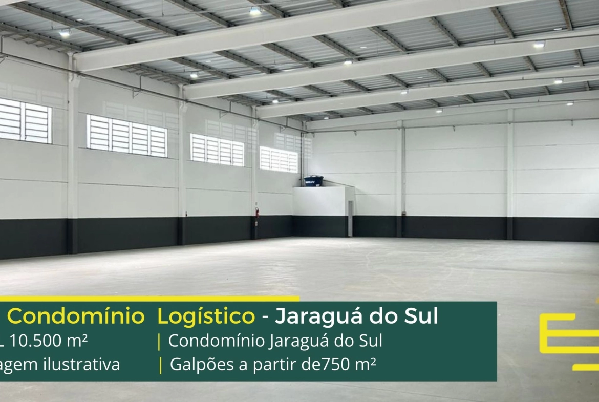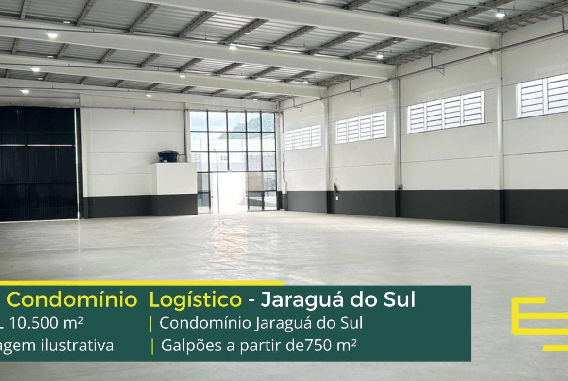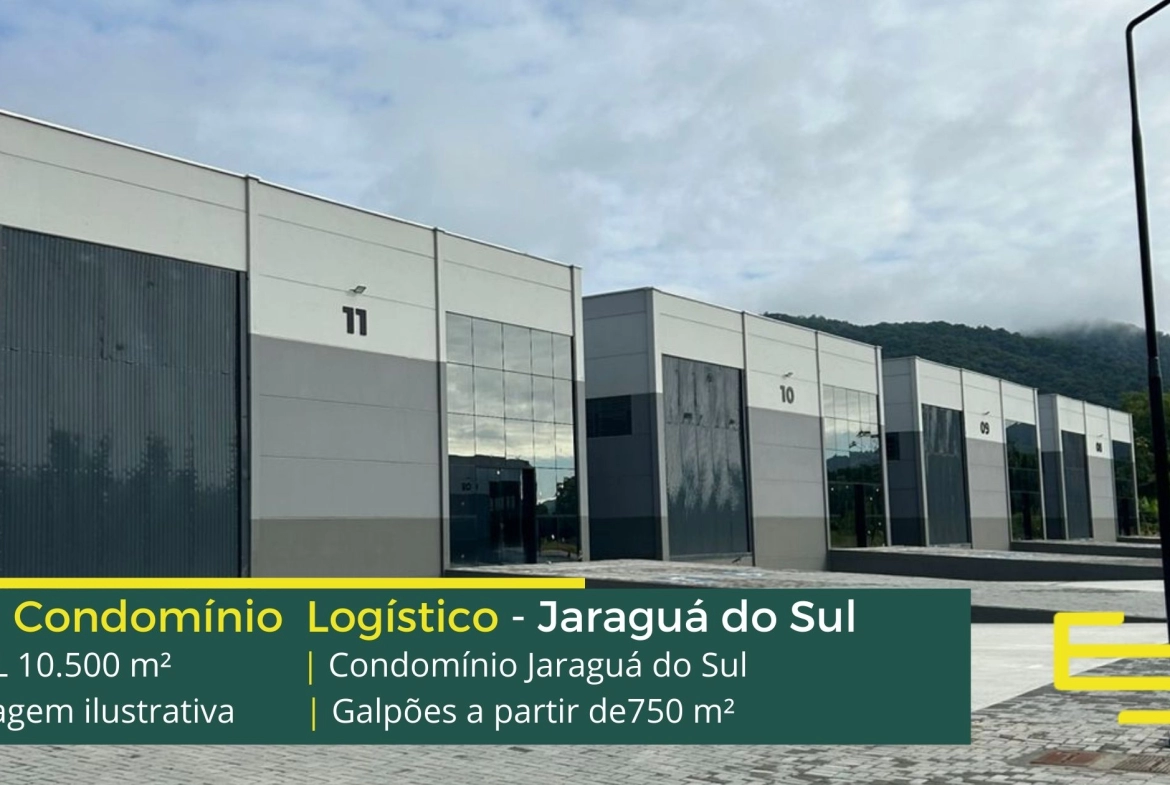Galpão para alugar em Jaraguá do Sul em condomínio com fácil acesso a Rodovia Senador Luiz Henrique da Silveira, e a Rodovia do Arroz, e além disso as cidades de Joinville e Barra Velha, o Condomínio Jaraguá do Sul possui área total construída de 10.500 m² e permite aluguel de galpões em Jaraguá do Sul através de módulos a partir de 750 m².