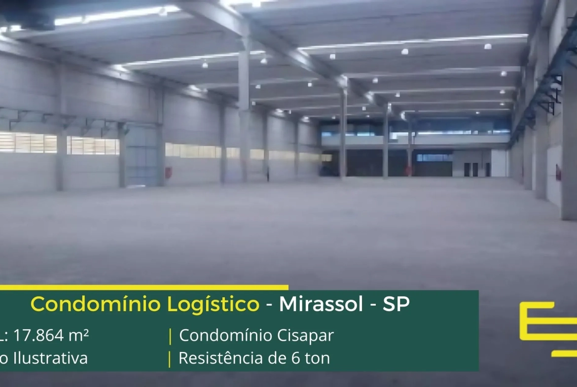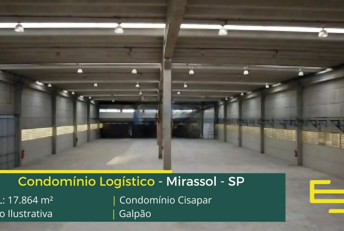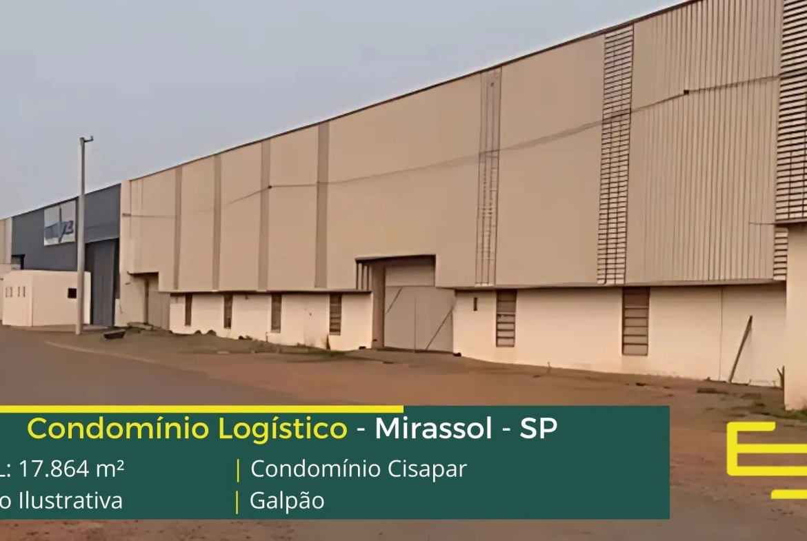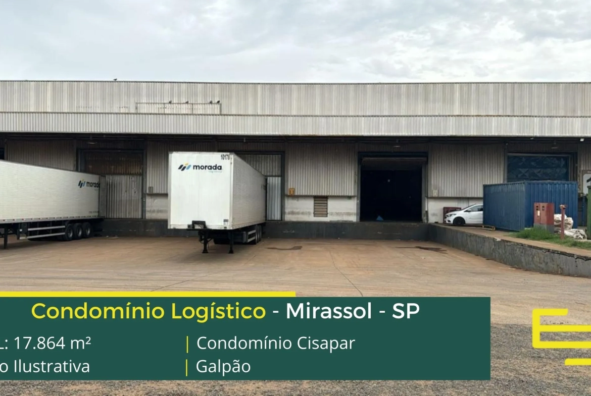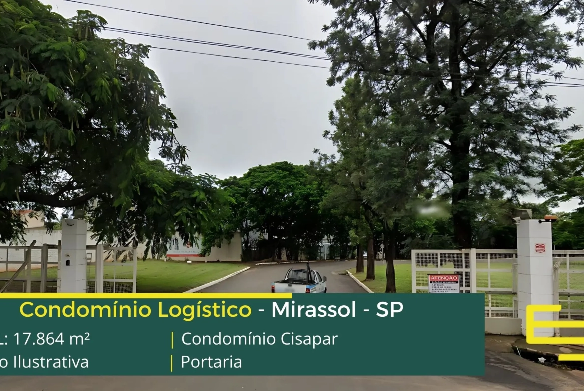 Galpão em Mirassol – Condomínio logístico com localização privilegiada, localizado perto da Rod. Washington Luís SP-456. O condomínio Cisapar conta com área total construída de 17.864 m²;