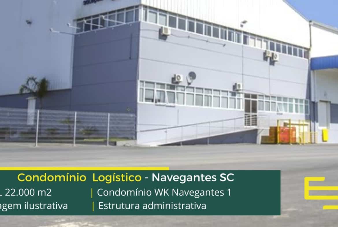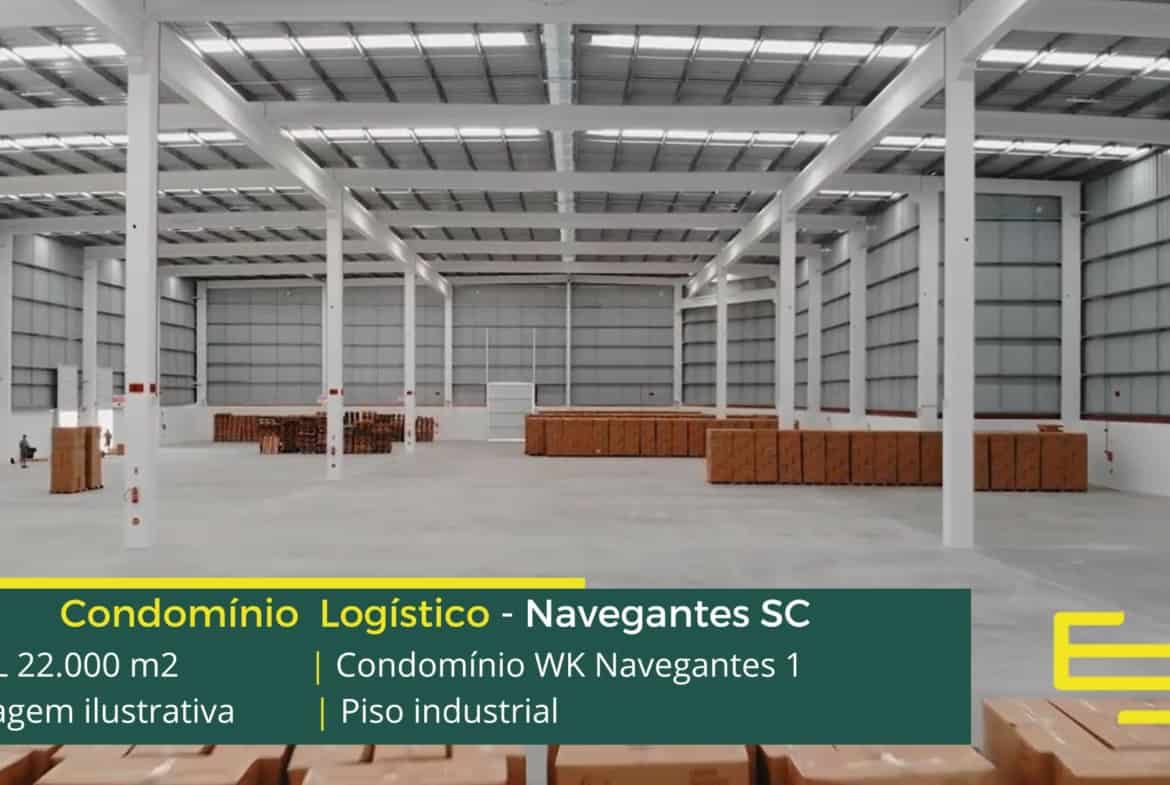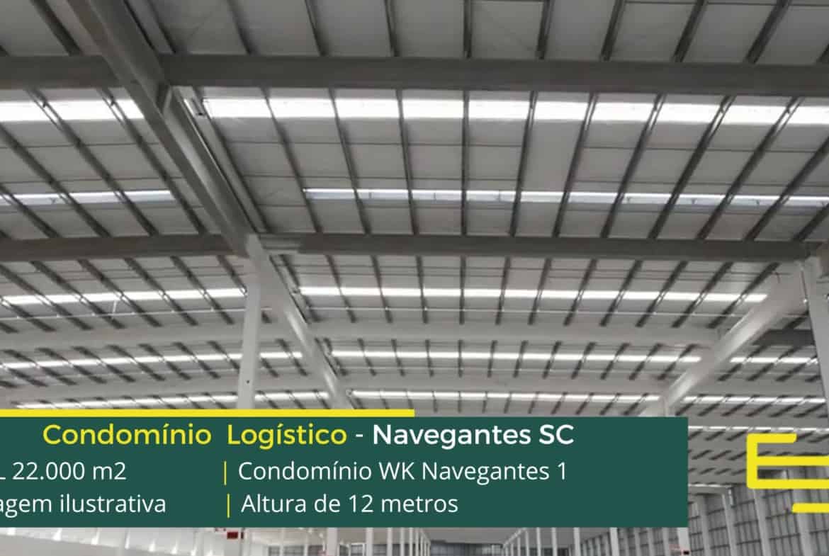 Galpão em Navegantes SC – Condomínio WK Navegantes. Empreendimento para uso industrial e além disso, logístico com área construída de 22.000 m2.