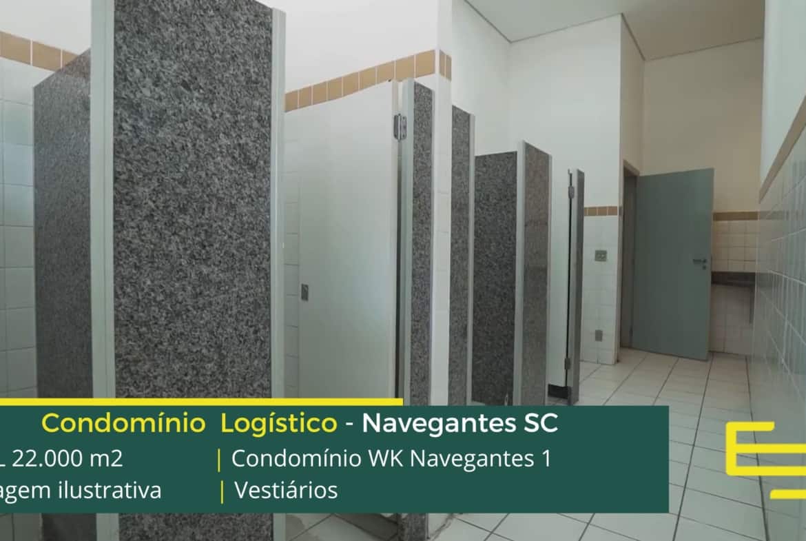 Fazem parte da estrutura deste condomínio de galpão para locação na cidade de Navegantes, amplo pátio de manobras pavimentado, e também, áreas de apoio com vestiários e refeitório.