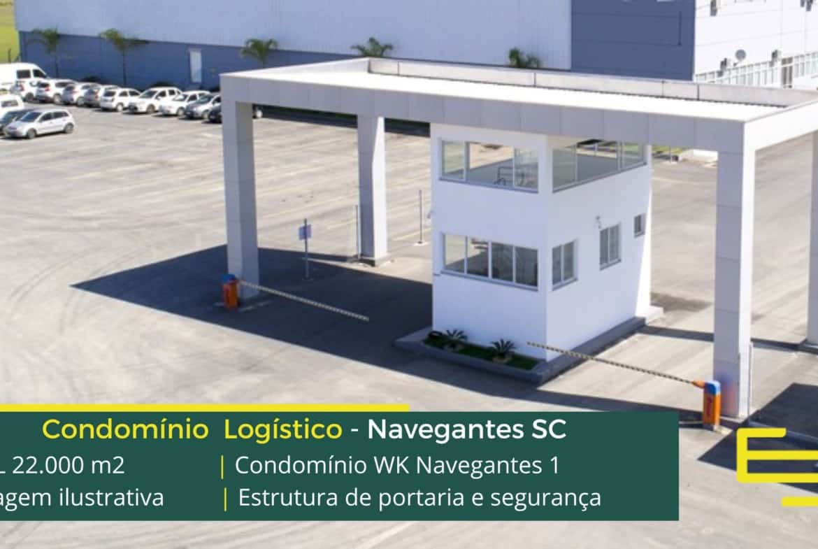 Esse empreendimento de galpões na cidade de Navegantes, conta com estrutura de portaria, com guarita e além disso, com apoio para segurança 24 horas.