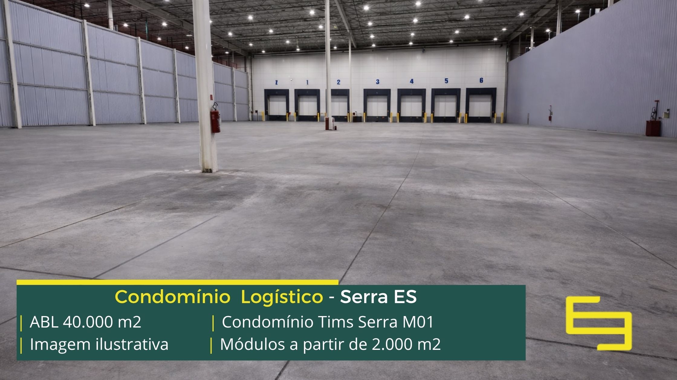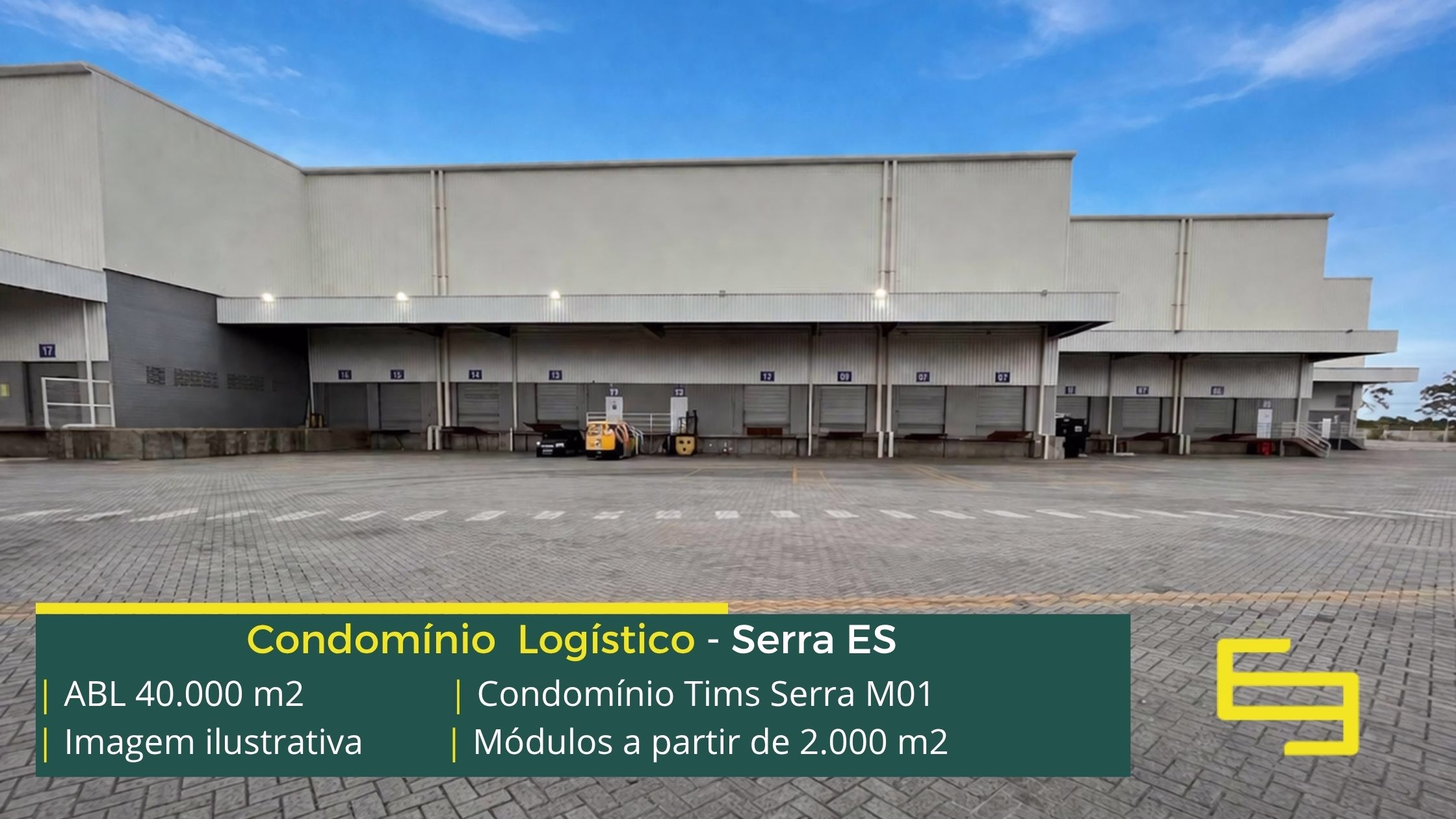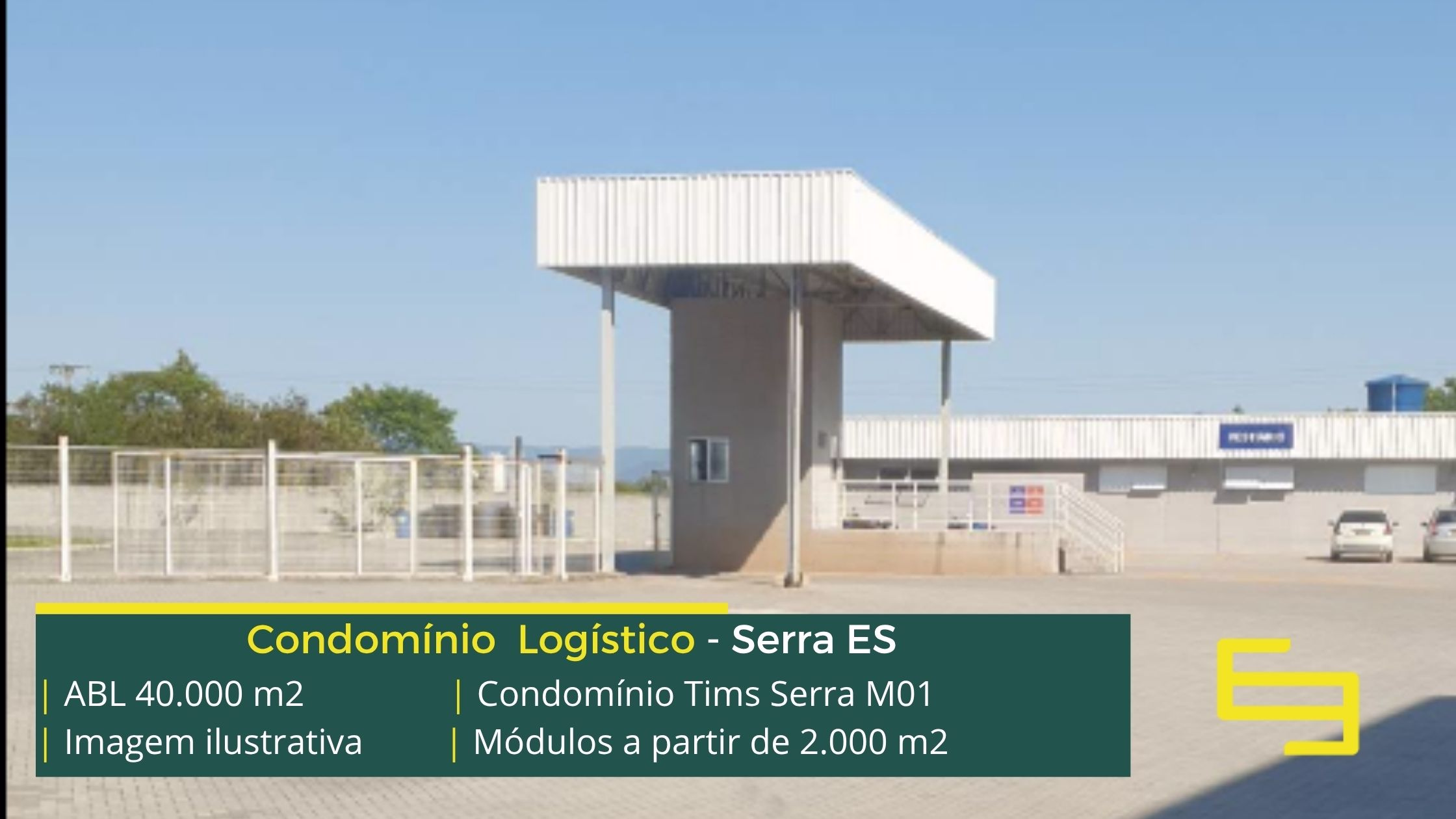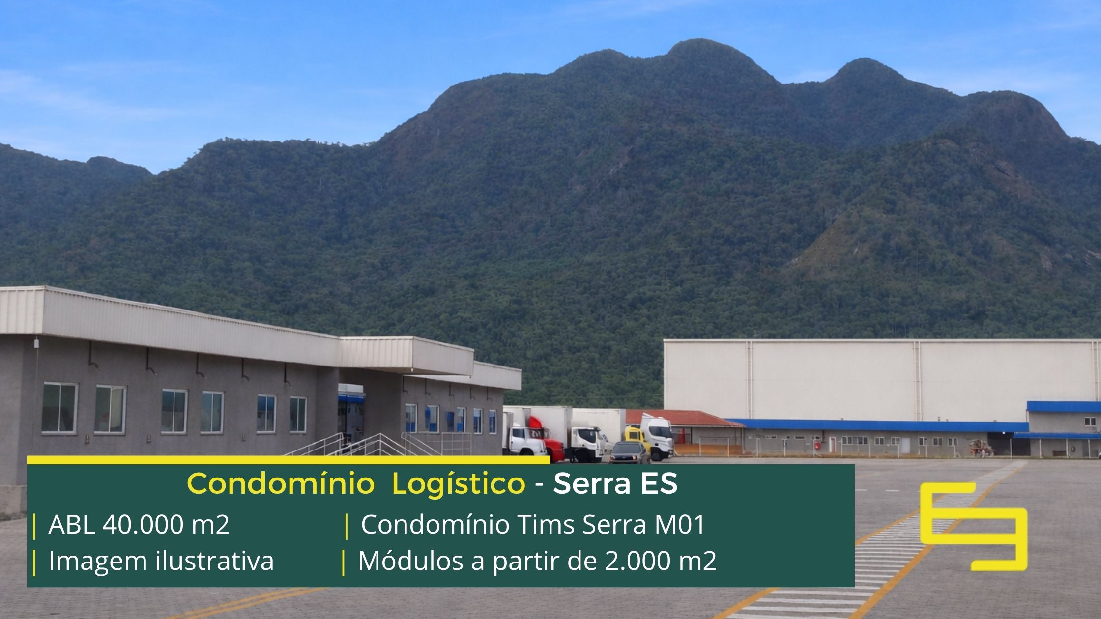 Galpão para alugar em Planalto de Carapina Serra em condomínio logístico localizado com fácil acesso a rodovia Governador Mário Covas, ao Porto de Vitórias e as cidades de Cariacica e Viana, O condomínio Tims M1 conta com área construída total de 40.000 m2 e permite aluguel de galpões em Serra a partir de 2000 m2.