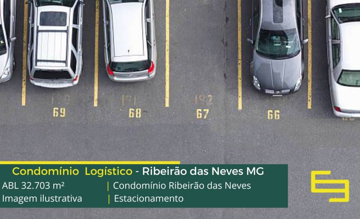 Condomínio logístico de aluguel de galpões em Ribeirão das Neves conta com amplo estacionamento interno e externo além disso: