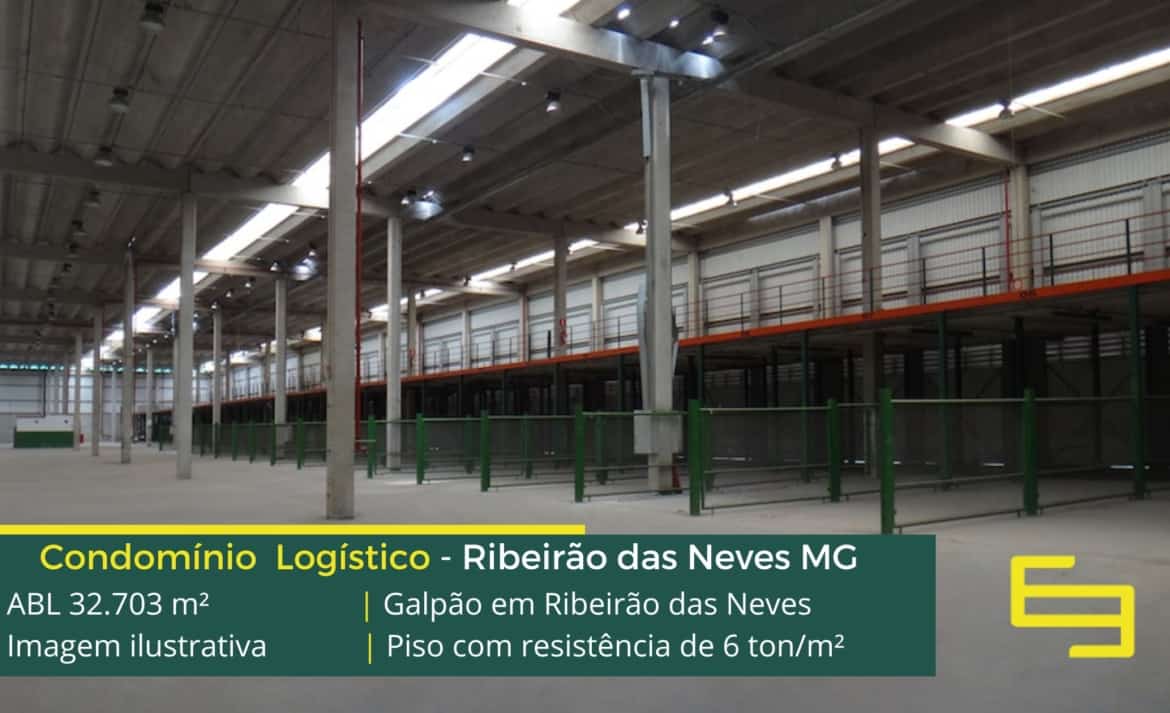 Galpão em Ribeirão das Neves – Condomínio Ribeirão das Neves. Condomínio industrial e sobretudo logístico com área total construída de 32.703 m².