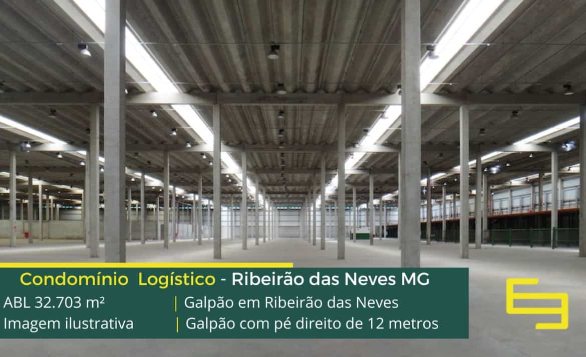 - Galpão para alugar em Ribeirão das Neves com altura de 12 metros que permitem otimização de armazenamento e sobretudo, conforto térmico