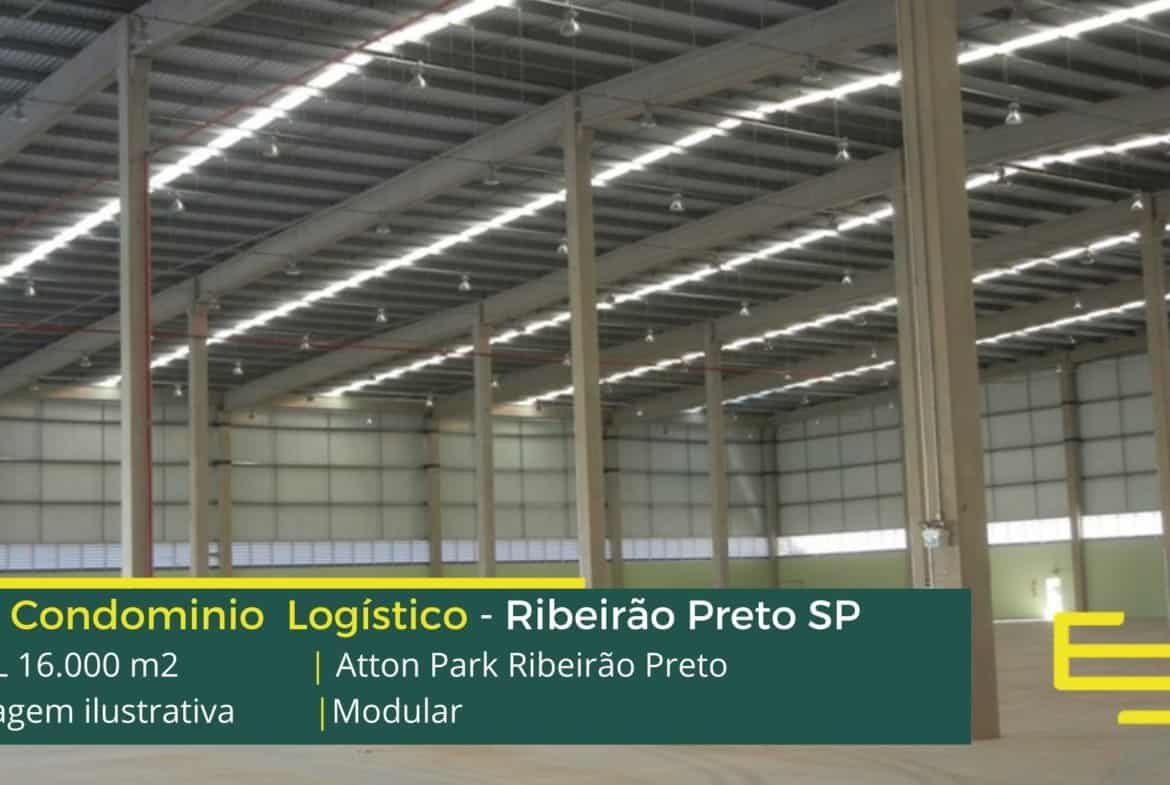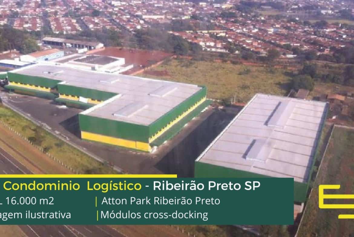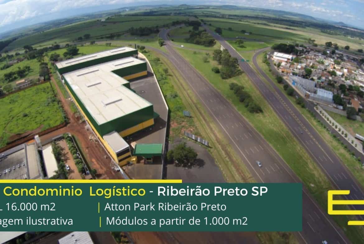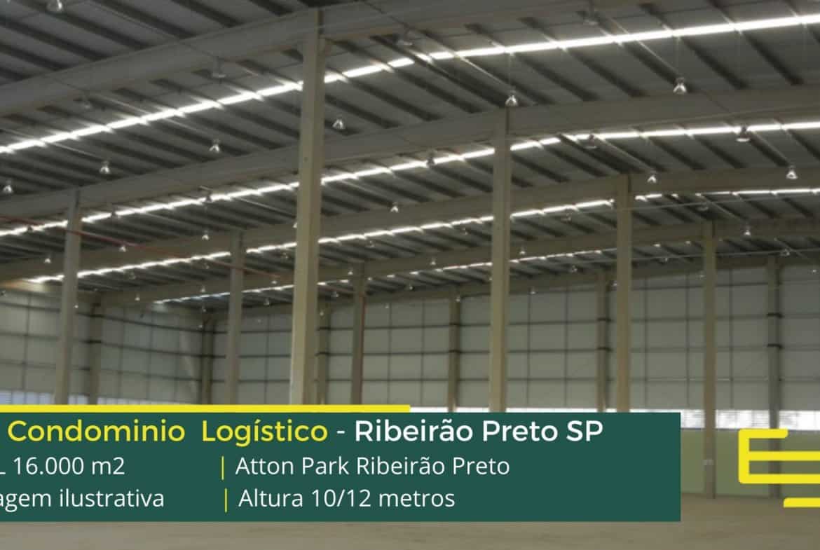 Galpão para alugar em Ribeirão Preto SP as margens da Rodovia Anhanguera no entroncamento da Rodovia Candido Portinari e com fácil acesso as cidades de Cravinhos e Batatais, o Condomínio Atton Park, é um condomínio Logístico e além disso, industrial com área construída de 17.150 m2 e possibilita aluguel de galpões em Ribeirão Preto SP em módulos de 1.900m².