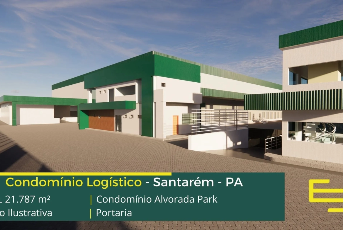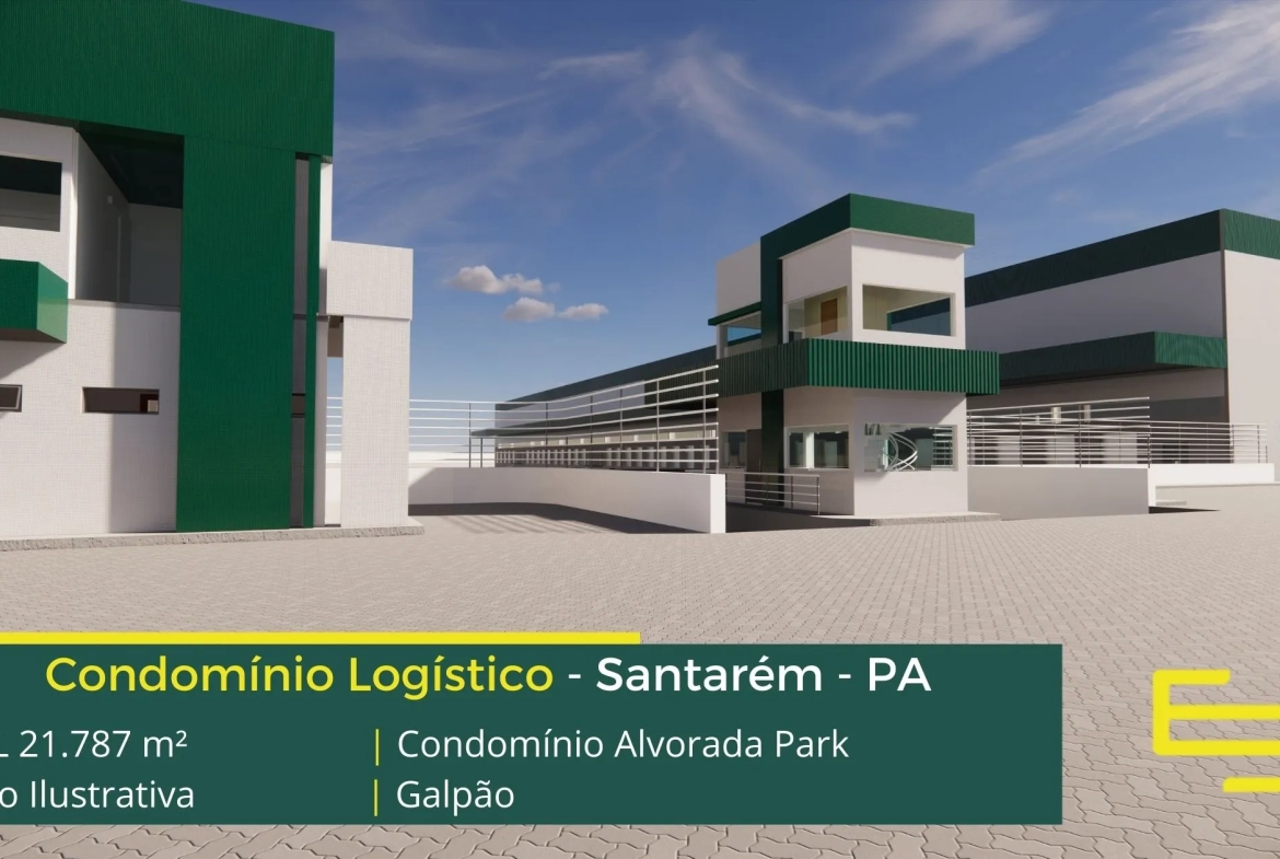 Galpão em Santarém PA – Condomínio Alvorada Park condomínio fechado de galpões para uso logístico, e além disso, distribuição e transportes, com localização privilegiada, o condomínio possui 21.787 de área total construída e modulação a partir de 3.000 m².