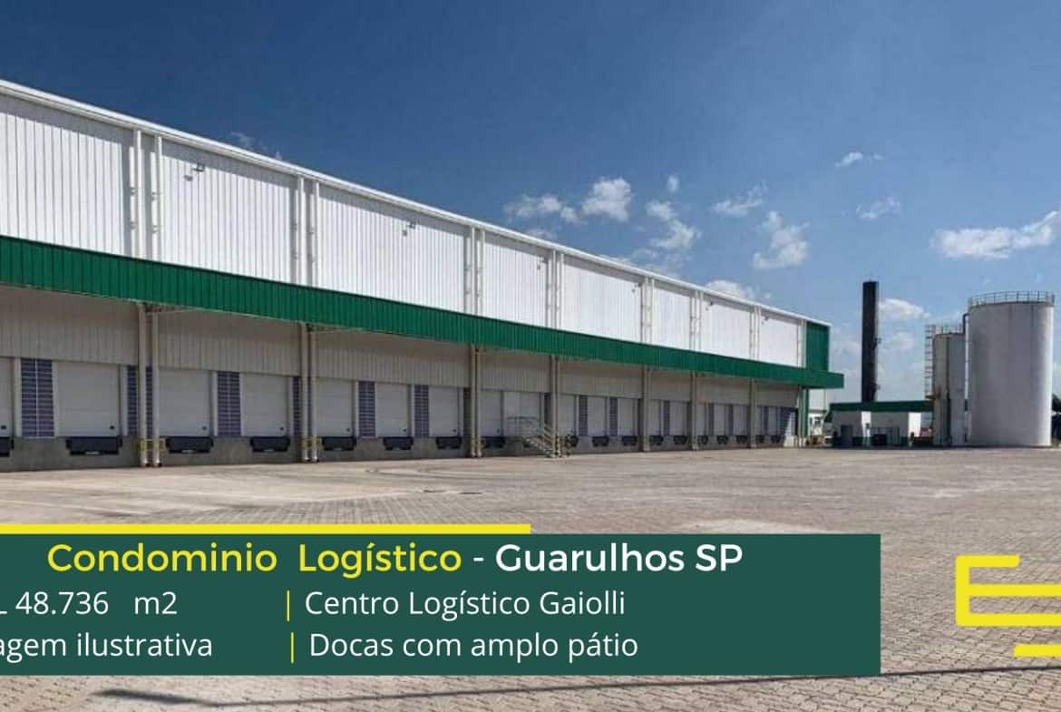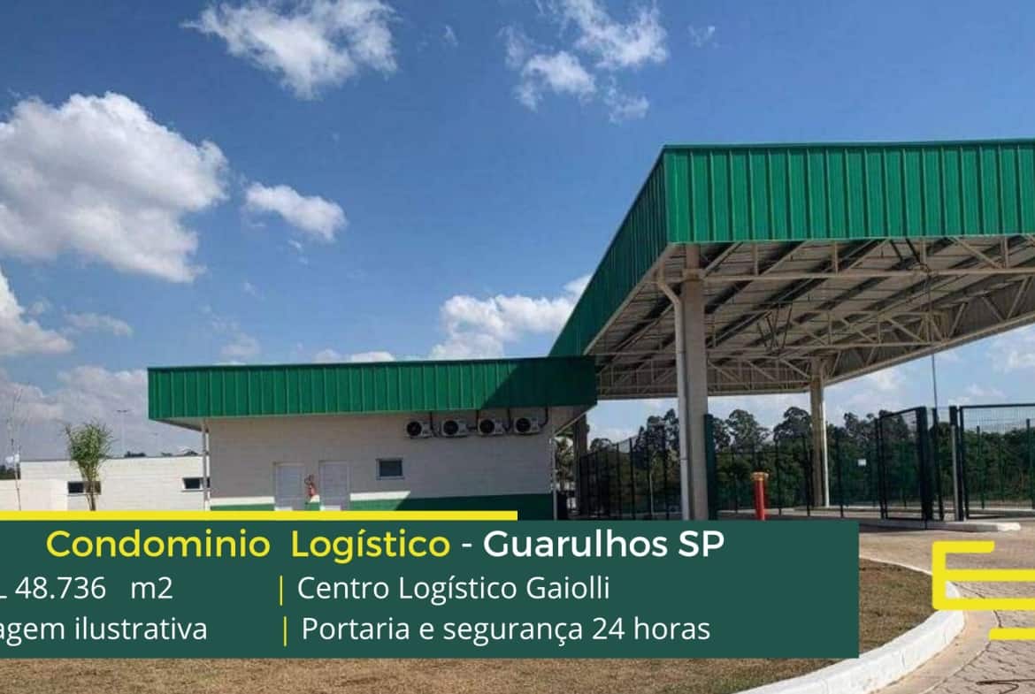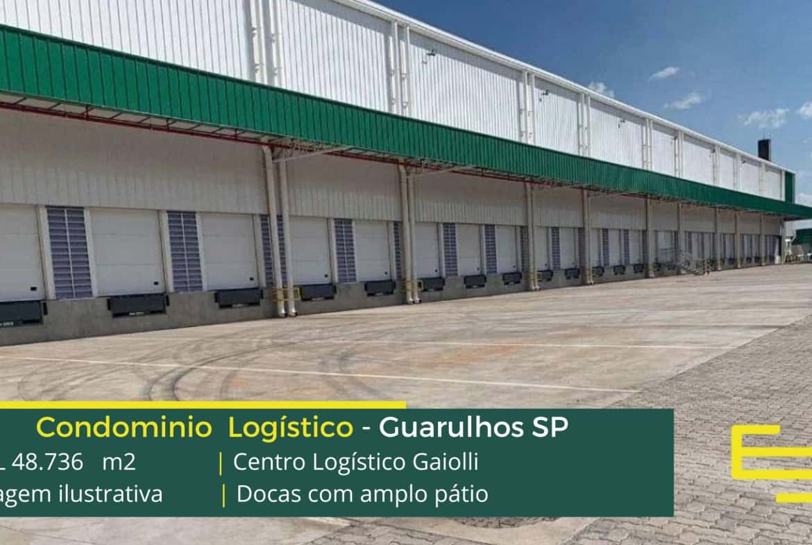Aluguel de galpão logístico em Guarulhos SP modulados com possibilidade de interligação com docas com niveladoras e sobretudo, em condomínio logístico que conta com portaria 24 horas e controle perimetral com CFTV.