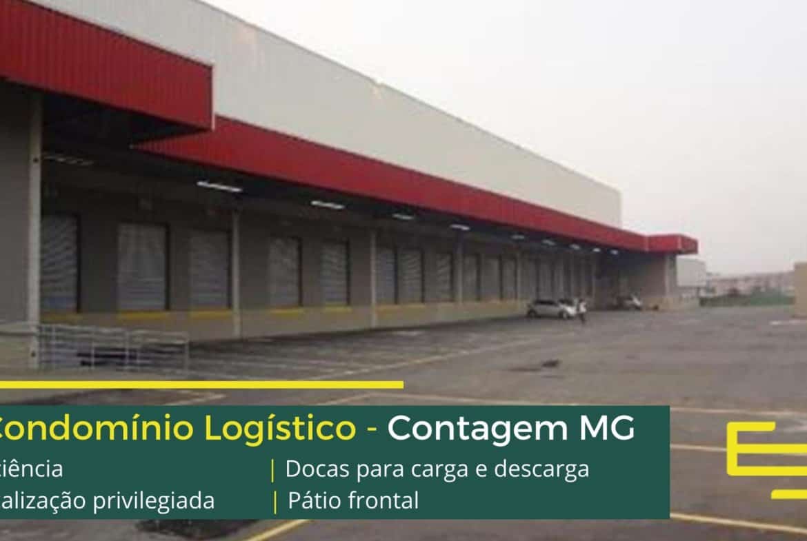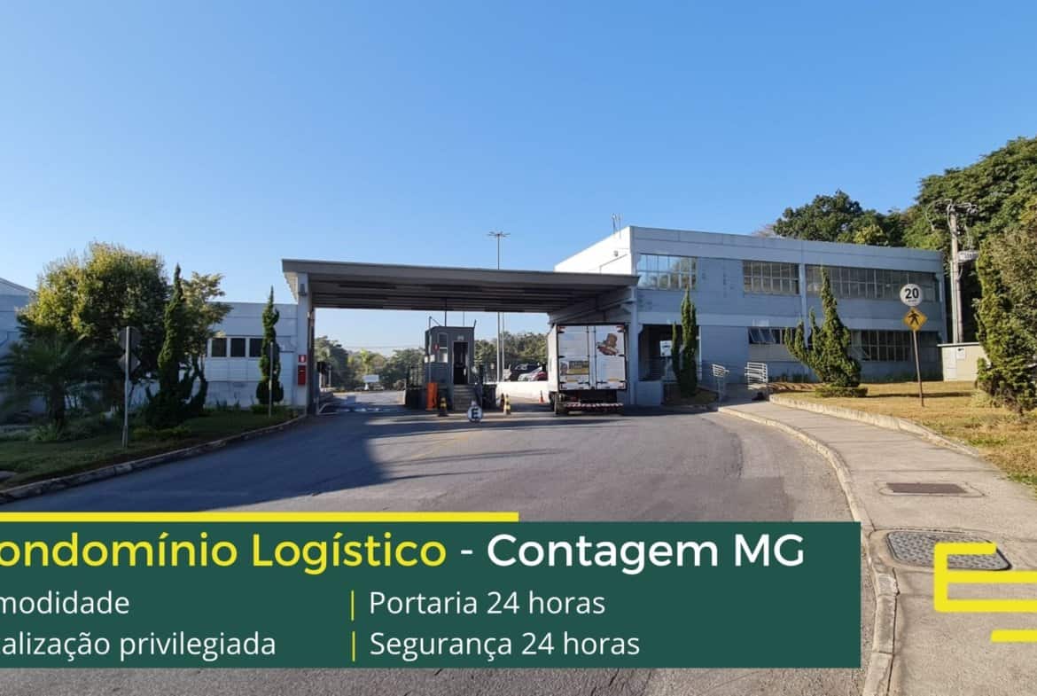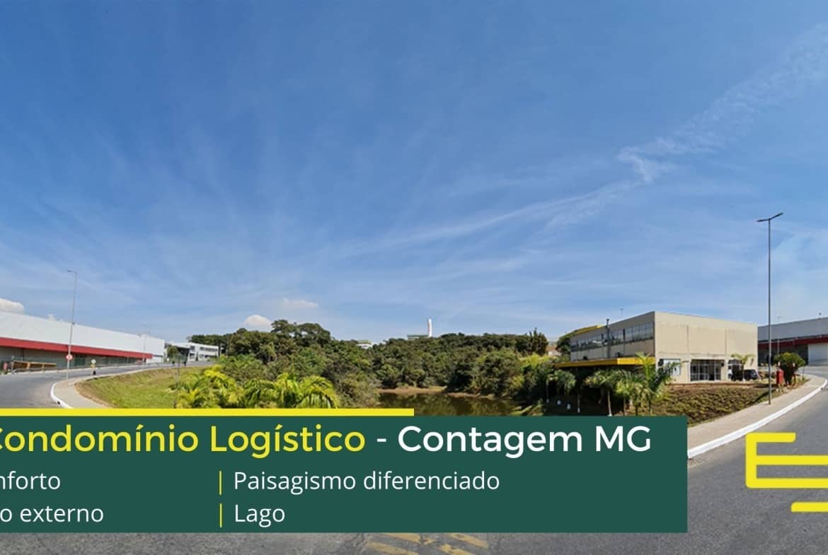 Aluguel de galpão em condomínio logístico na cidade de Contagem entre a BR 040 e a Via Expressa com completa estrutura de segurança e desenvolvido para operações logísticas de distribuição e, sobretudo, transportes.