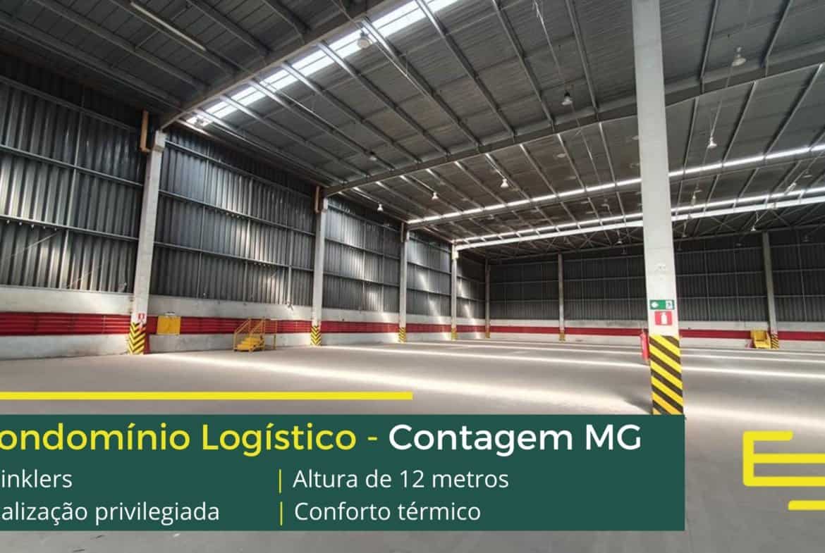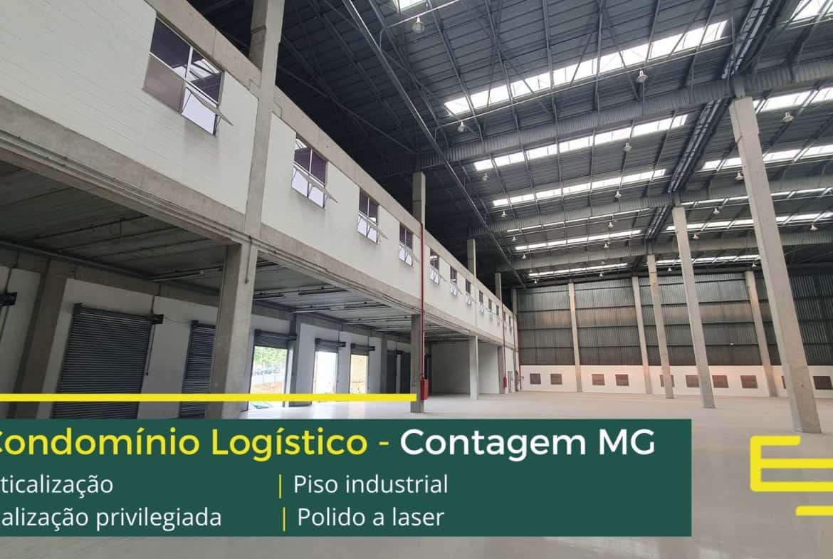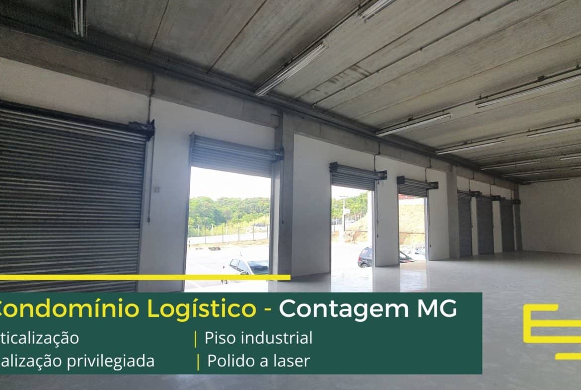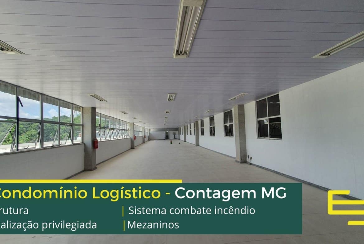 Aluguel de galpão em condomínio logístico na cidade de Contagem entre a BR 040 e a Via Expressa com completa estrutura de segurança e desenvolvido para operações logísticas de distribuição e, sobretudo, transportes.