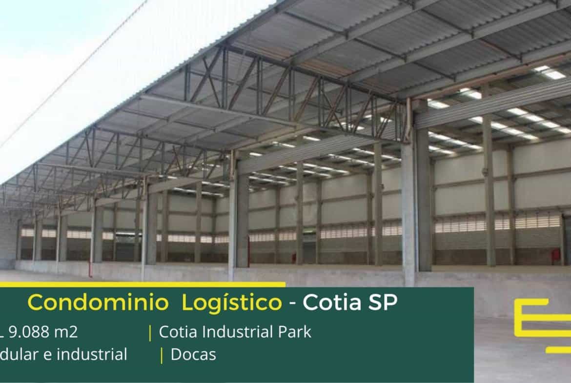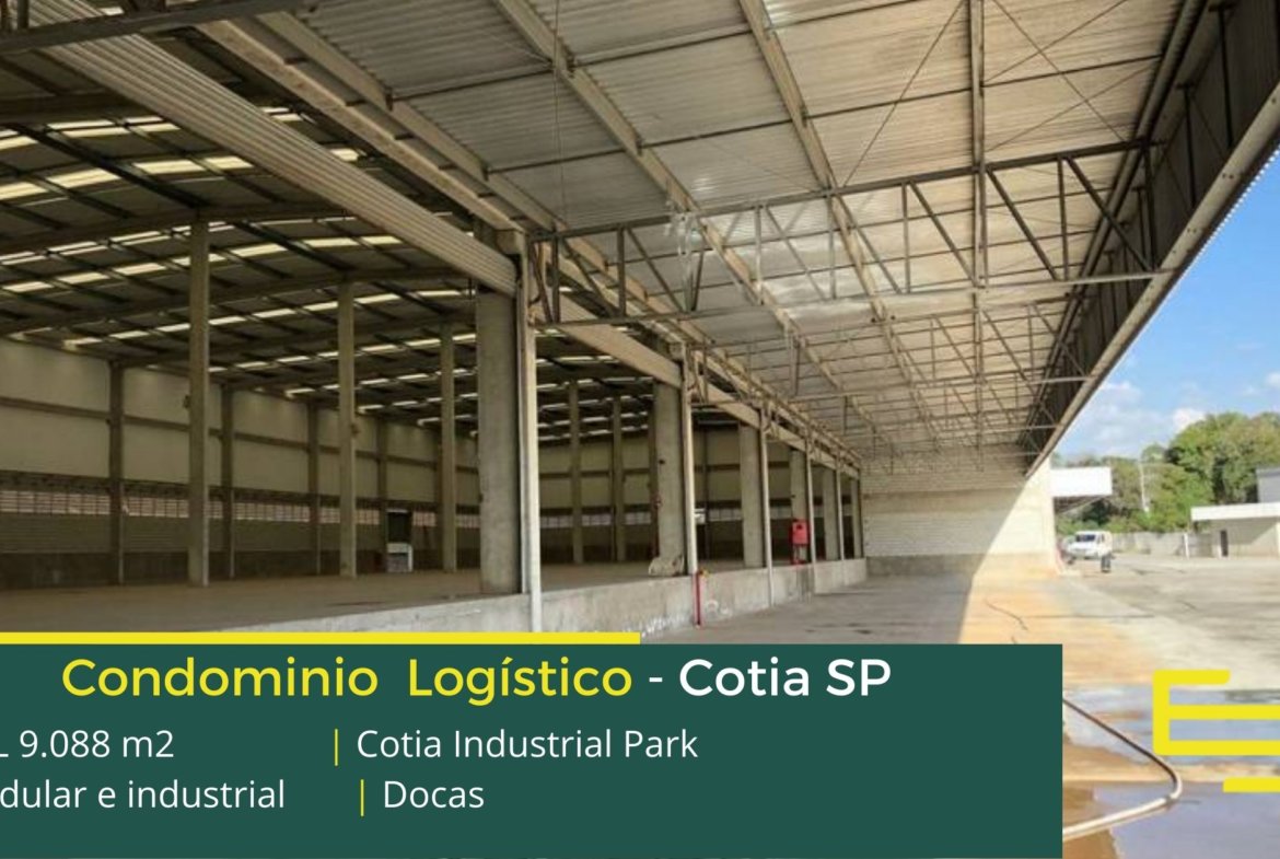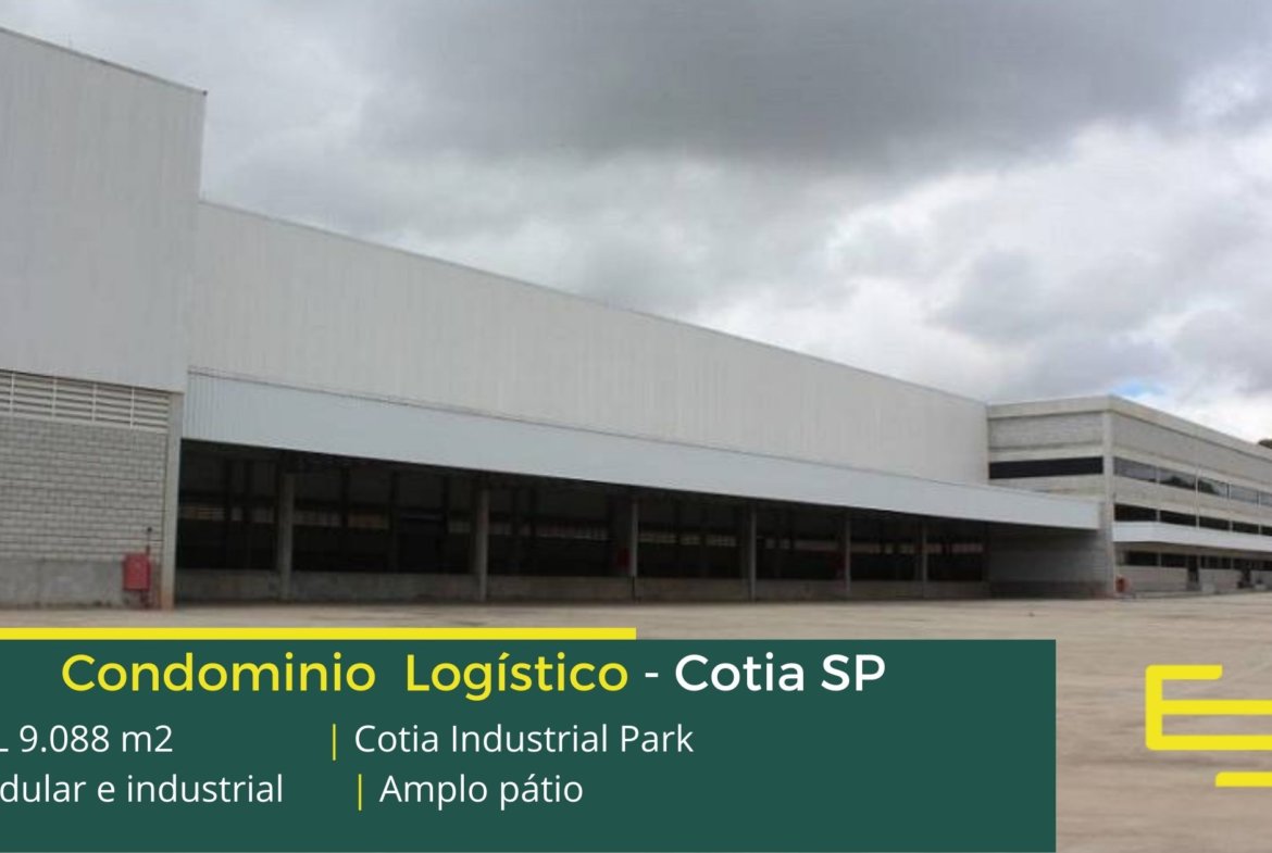 Aluguel de galpão em condomínio logístico na cidade de Cotia localizado a 2,9 km da Raposo Tavares, e a apenas a 30 km do centro de São Paulo, e que foi desenvolvido para operações logísticas de distribuição e sobretudo transportes.