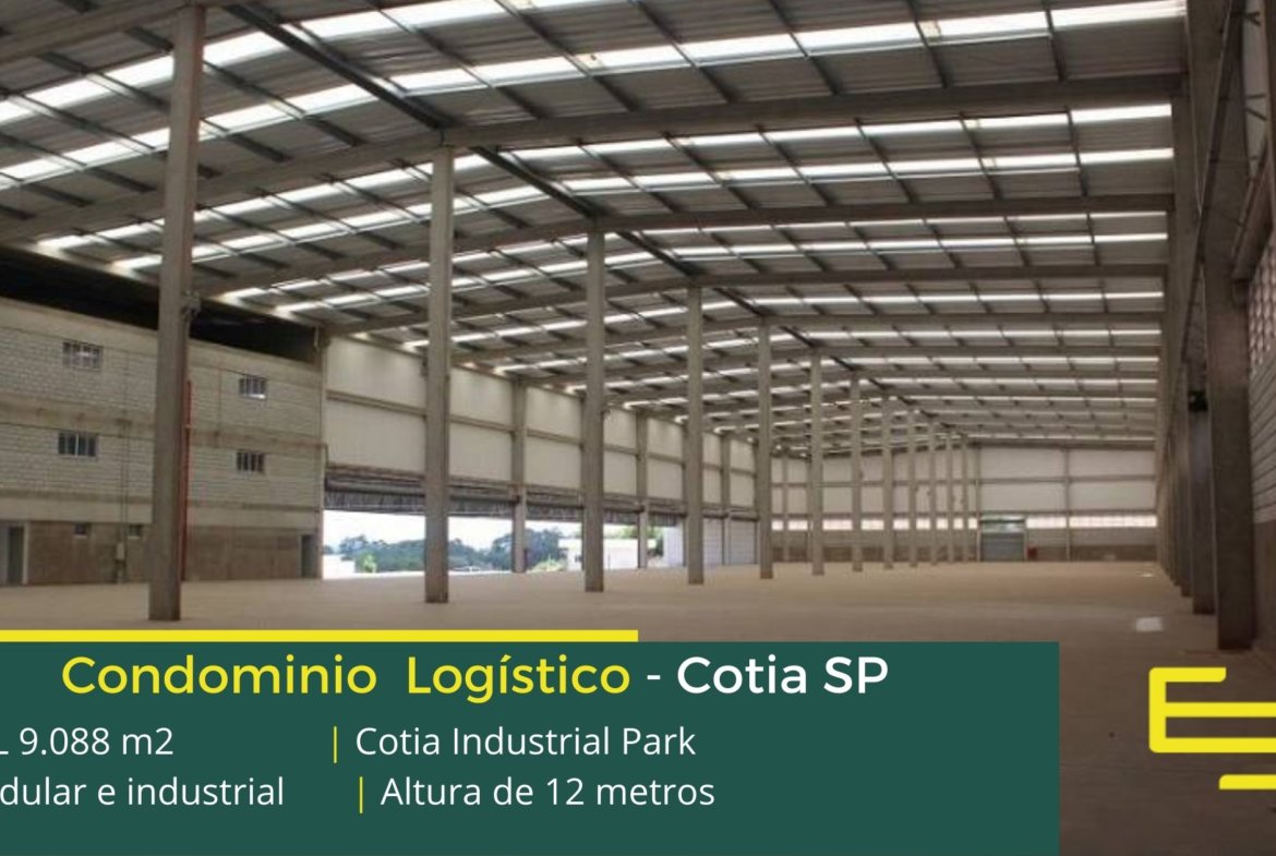 Galpão para Locação em Cotia SP em Condomínio logístico com localização privilegiada, na AV. João Paulo Ablas n°3127., com fácil acesso ao Rodoanel Mário Covas e as cidades de Embu das Artes e Osasco. O condomínio Cotia Industrial Park conta com área total locável de 9,088 m² e que além disso, permite aluguel de galpões em Cotia a partir de 1.000 m2.