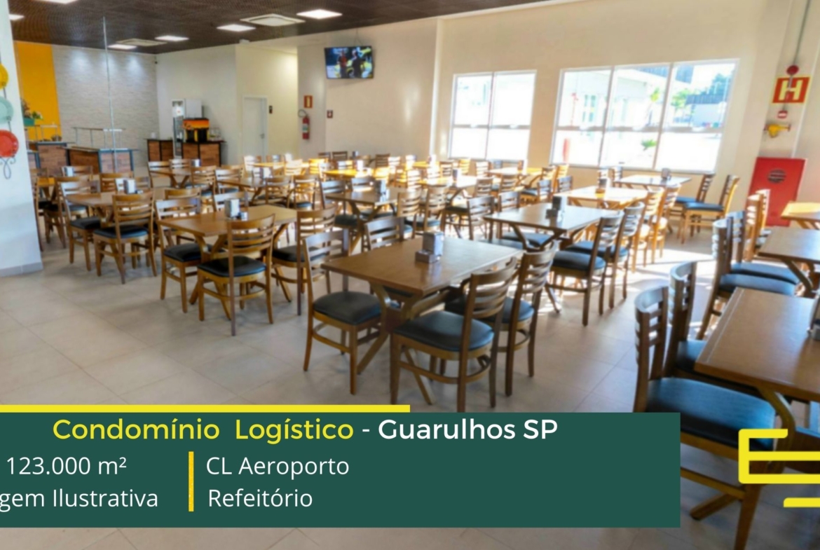 Galpão para locação em condomínio logístico em Guarulhos SP com ambientes para reuniões, espaços variados para armazenamento de mercadorias, e além disso, com garagem privativa e portaria 24 horas.
