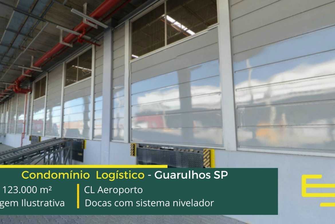 - Aluguel de galpões em Guarulhos SP com docas com plataforma niveladora;