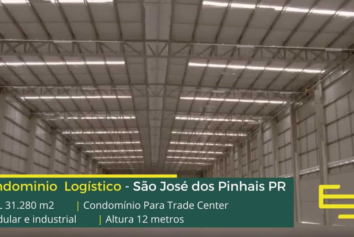 Galpão para alugar em São José dos Pinhais PR com pé-direito livre 14 metros, resistência do piso 6 ton/m², modulação de colunas de 25m x 12m, iluminação natural, e além disso, em condomínio logístico.