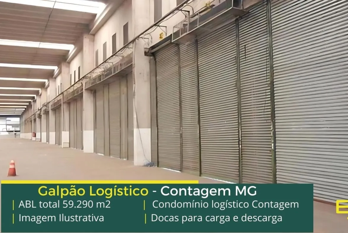 Aluguel de galpões em Contagem, em condomínio logístico, próximo ao Ceasa, com amplo pátio de manobras, docas para carga e descarga, com portaria e além disso, estrutura de segurança 24 horas, com guarita blindada, bem como CFTV.