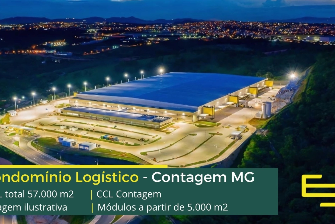 - Aluguel de galpão em Contagem com módulos a partir de 10.000 m2;