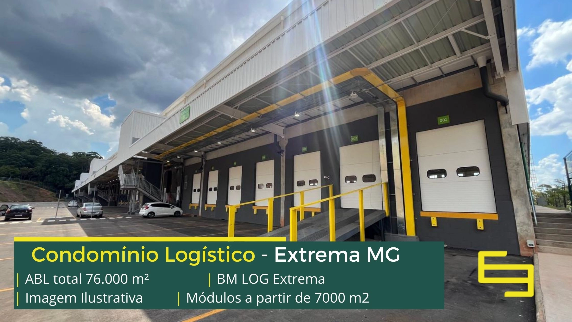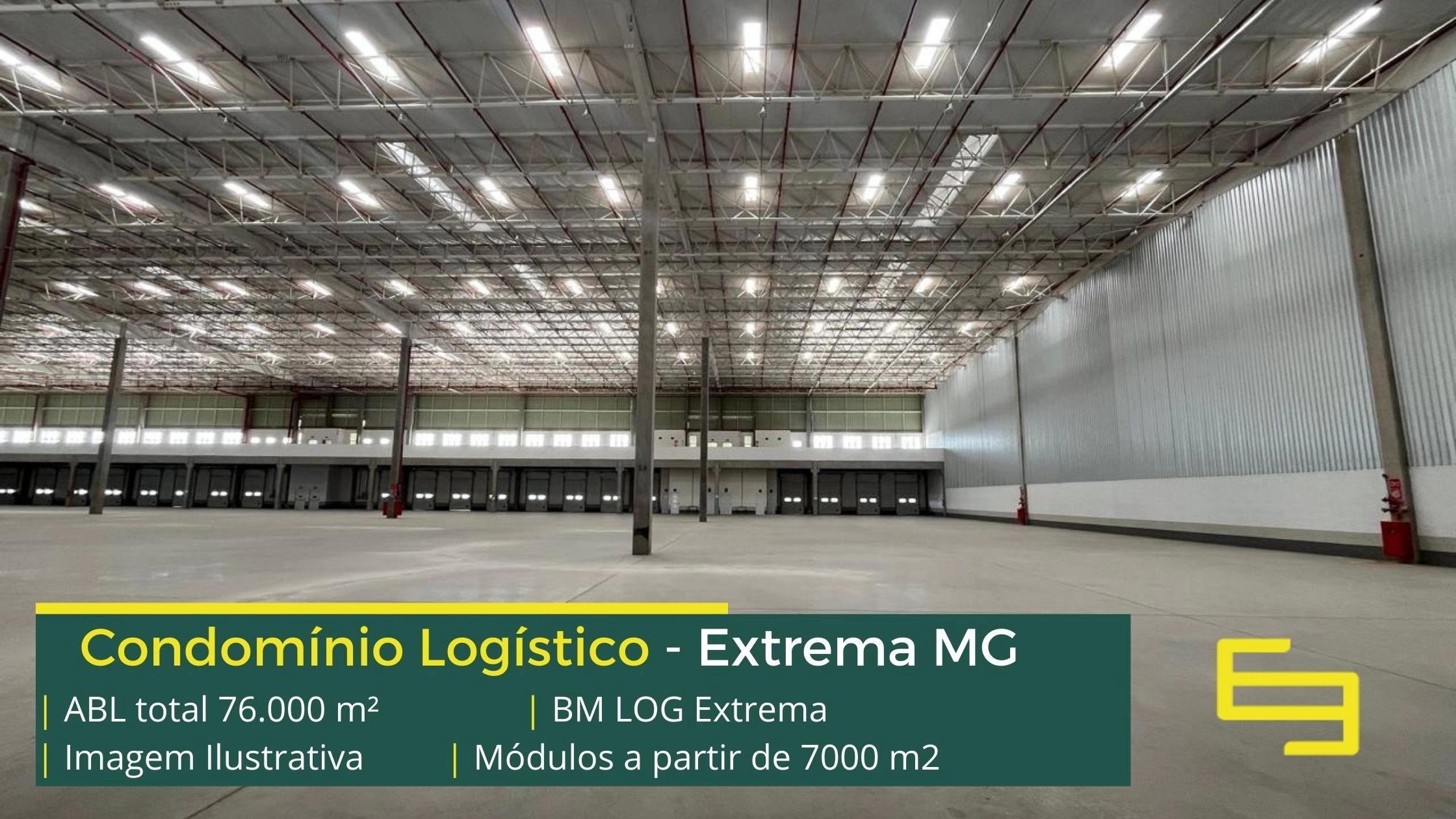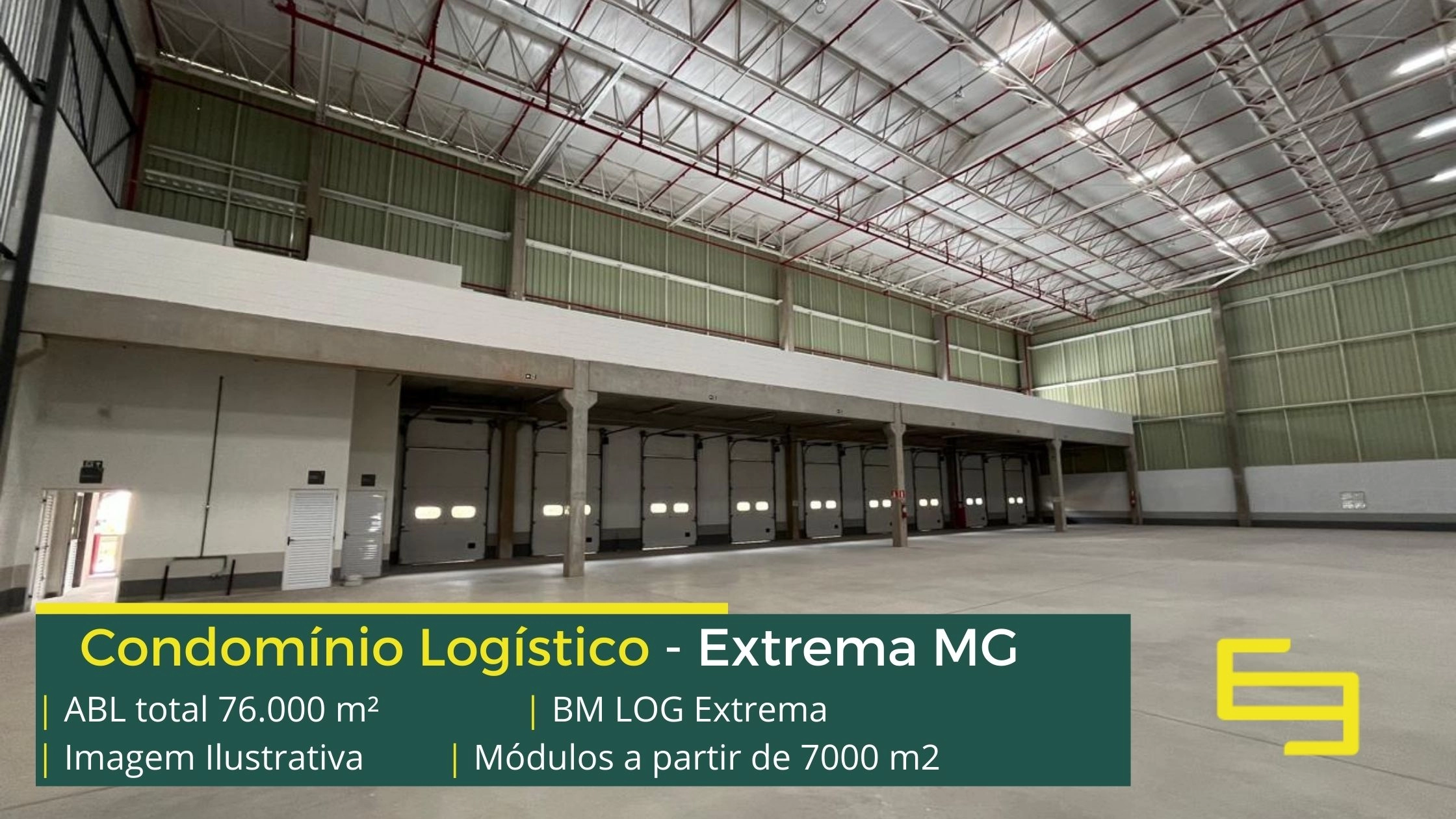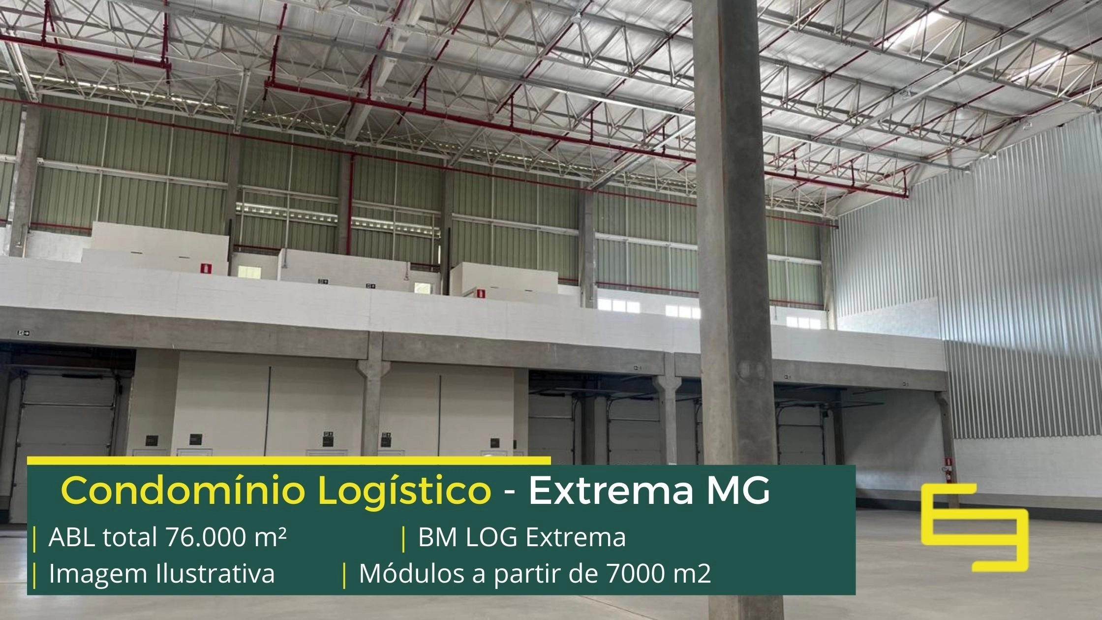 Galpão logístico para alugar em Extrema MG em condomínio com localização privilegiada, localizado a 2 min da Rodovia Fernão dias, próximo ao aeroporto de Bragança Paulista e com fácil acesso às cidades de Joanópolis e Vargem. O condomínio BM Log Extrema conta com área total locável de 76.878 m² e permite aluguel de galpões em Extrema a partir de 7000 m2.