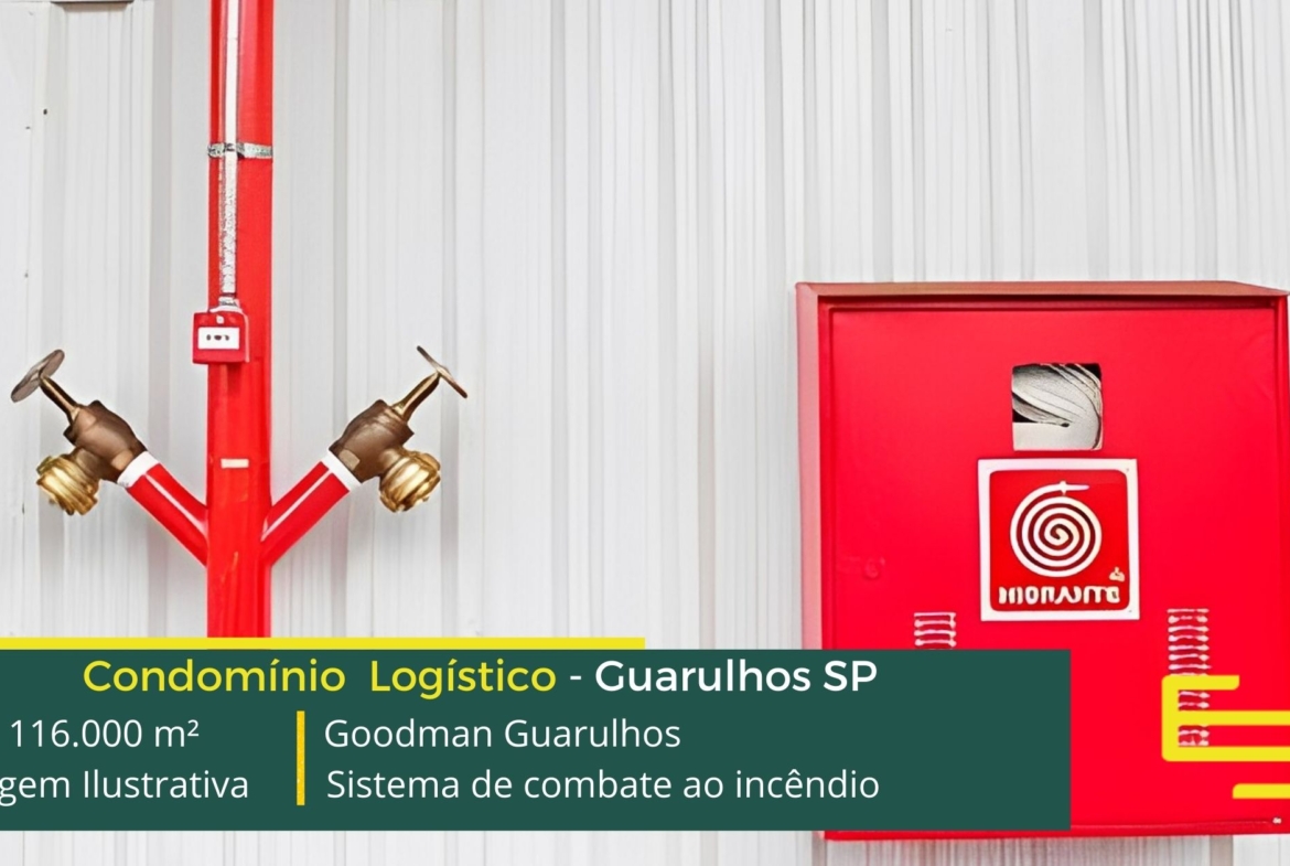 - Galpão com sistema de combate a incêndio, além disso, com uso de sprinklers e hidrantes