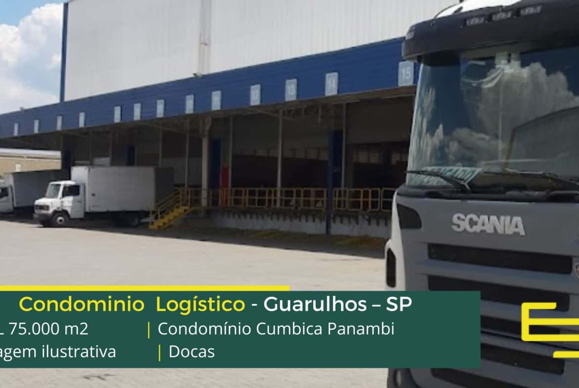- Aluguel de galpões em Guarulhos (Cumbica) SP com docas para carga e descarga;