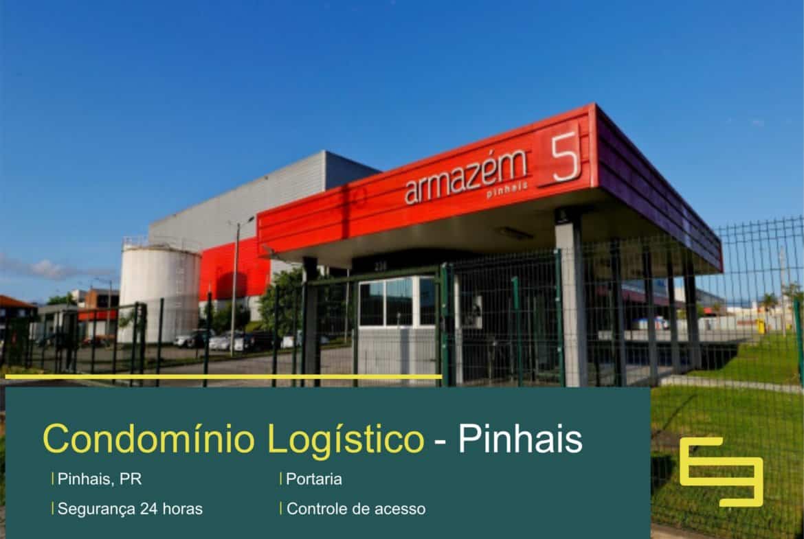 Galpão para alugar na cidade de Pinhais, na região metropolitana de Curitiba, em condomínio logístico com controle de entrada e saída de veículos e pessoas e além disso, cerca elétrica industrial com sistema sonoro.