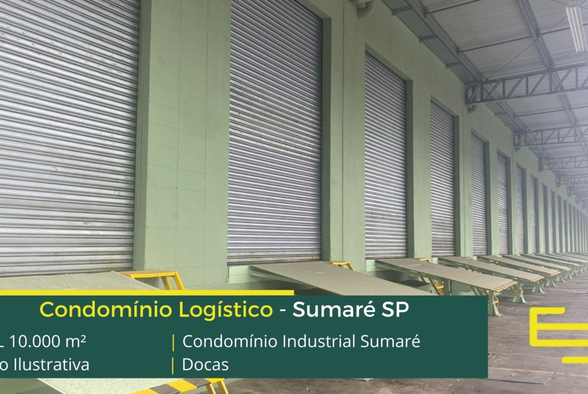 Locação de galpão logístico em Sumaré, em condomínio que conta com portaria e controle de acesso, e que sobretudo possui galpões para logística com docas e estacionamento privativo.