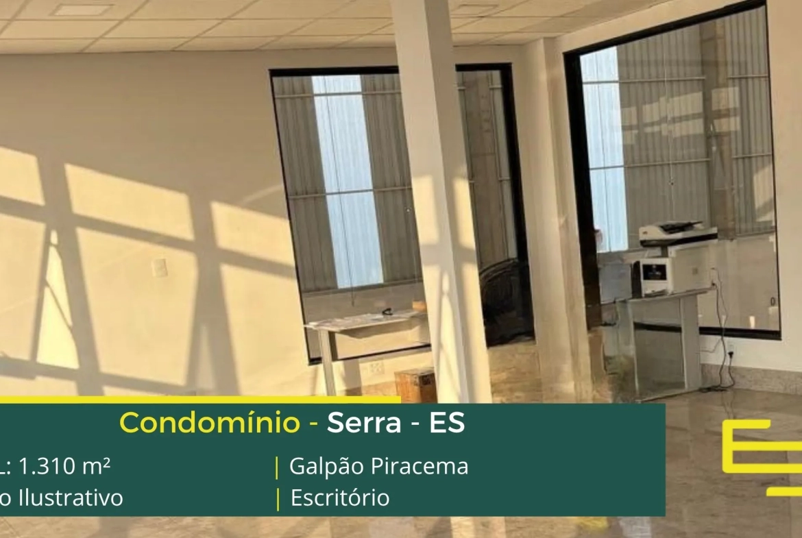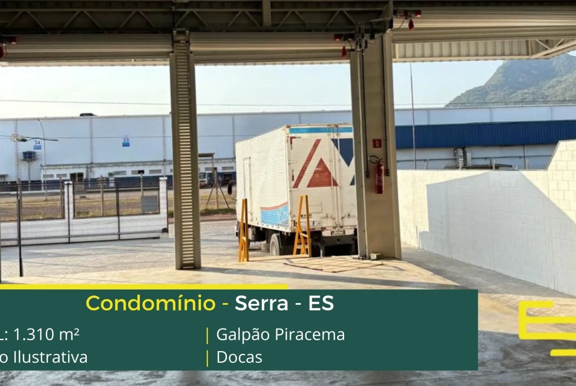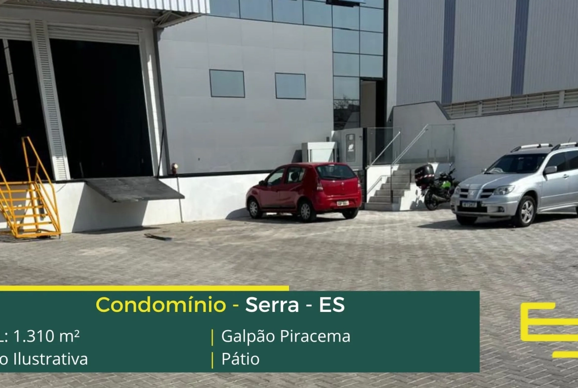 Galpão logístico para alugar em Serra ES que é ideal para logística, transportes e além disso, distribuição, o galpão Piracema possui diferencial em sua localização a 7 minutos da Rodovia do Contorno, com fácil acesso a Vitória e Cariacica, este galpão para locação em Serra, possuí área locável total de 1.310 m².