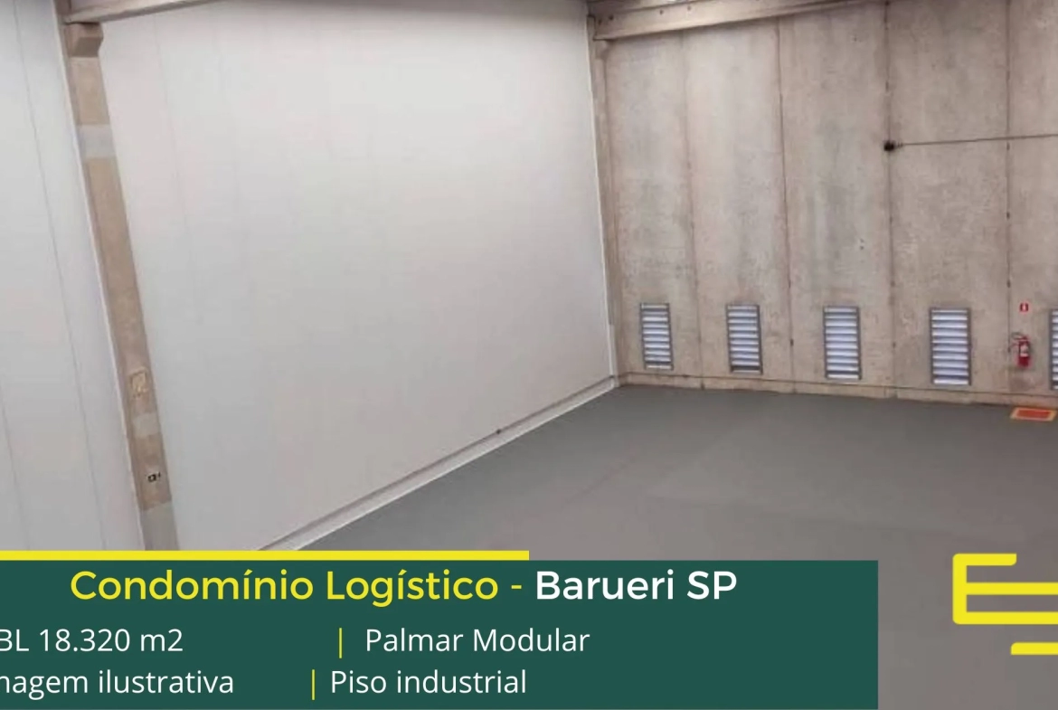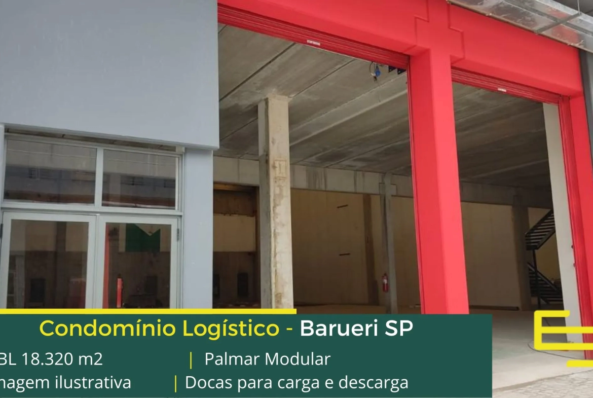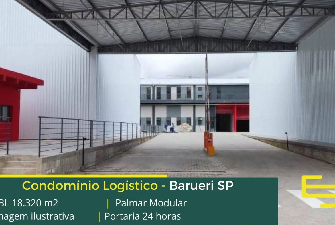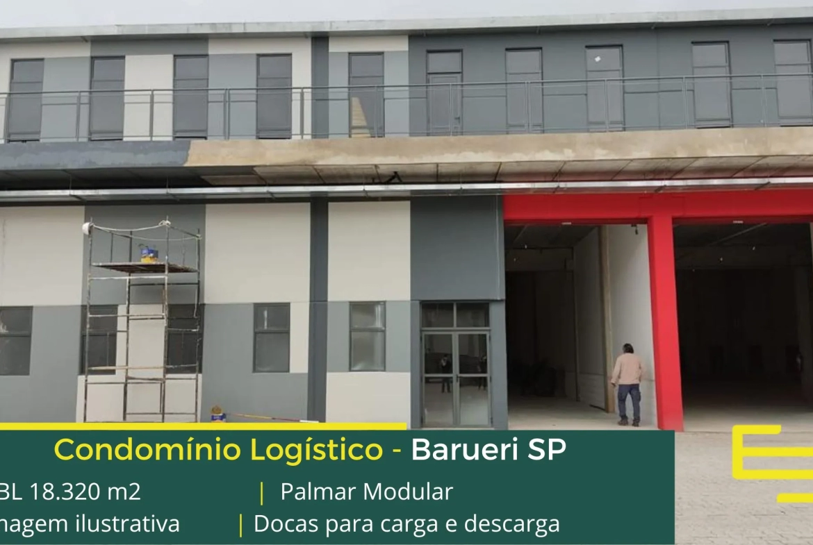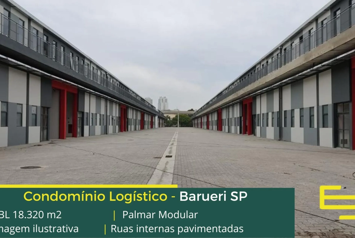 Galpão logístico AAA para locação em Barueri localizado a menos de 2 km da Rodovia Castello Branco, e com fácil acesso ao Rodoanel Mário Covas, o Condomínio Palmar Modular, conta com área total construída de 18.320 m² e que, permite aluguel de galpões em Barueri SP a partir de 376,95 m².
