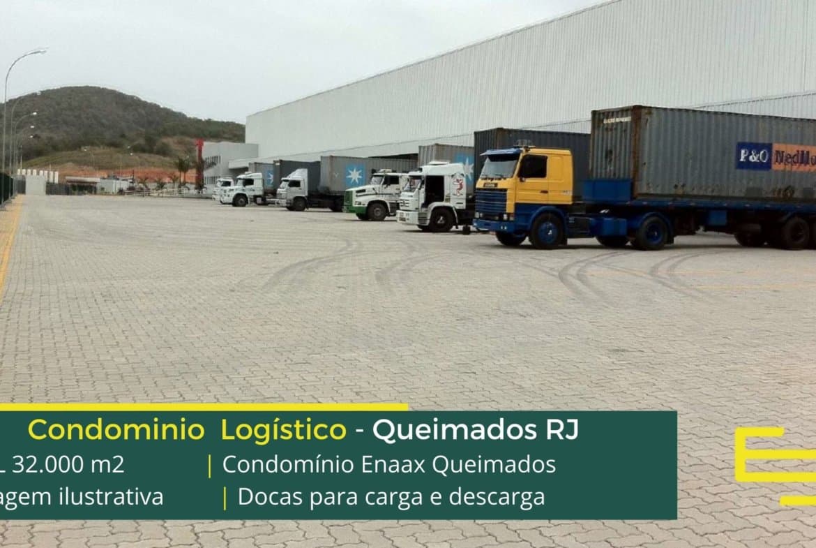 Aluguel de galpão logístico em Queimados RJ em condomínio com fácil acesso as cidades de Seropédica, Duque de Caxias e além disso, Itaguaí, com portaria e segurança 24 horas e ainda galpões modulares com docas.