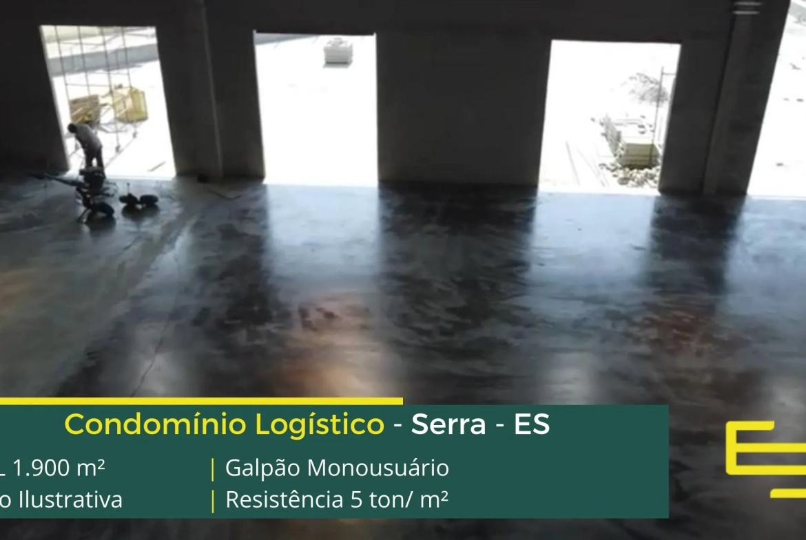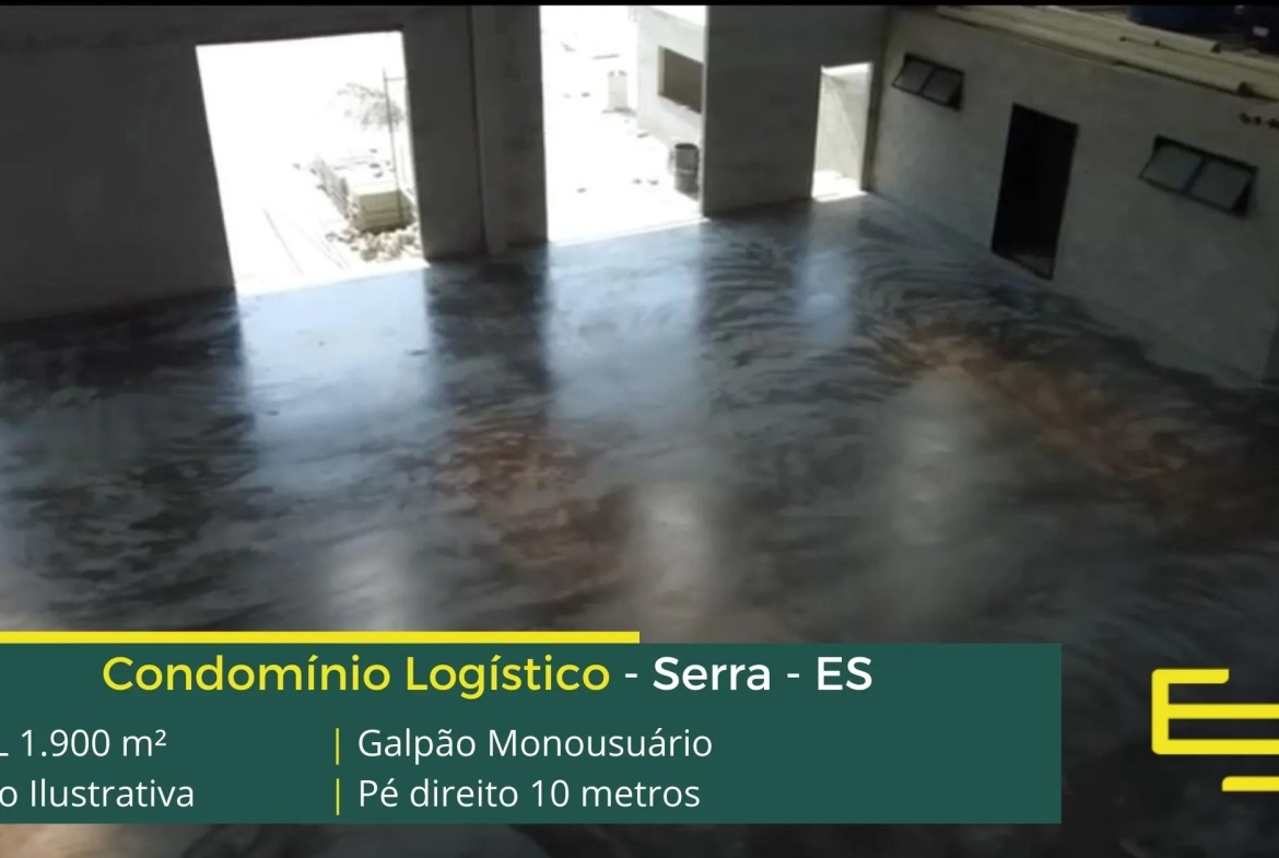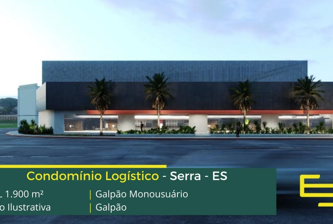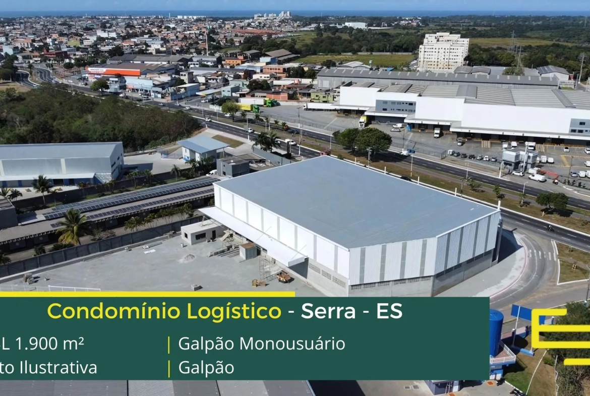 Galpão Monousuário Serra– Galpão Monousuário Serra galpões para uso logístico, e além disso, distribuição e transportes, com localização privilegiada, com modulação 1.900 m².