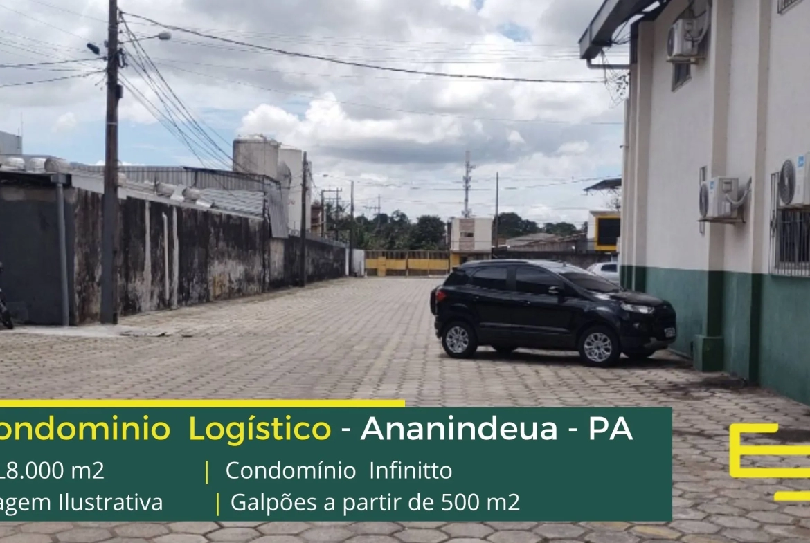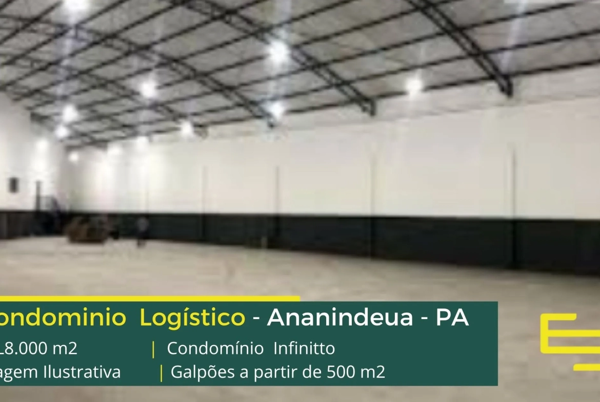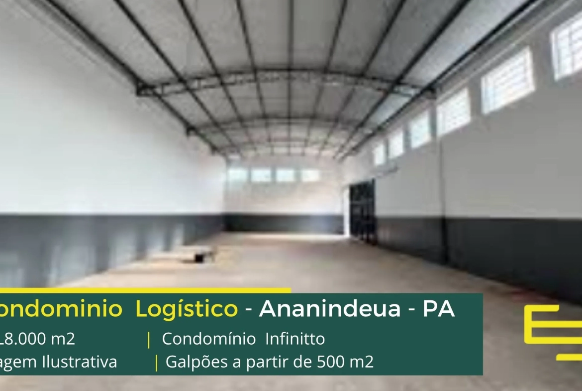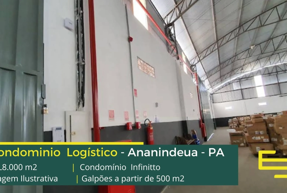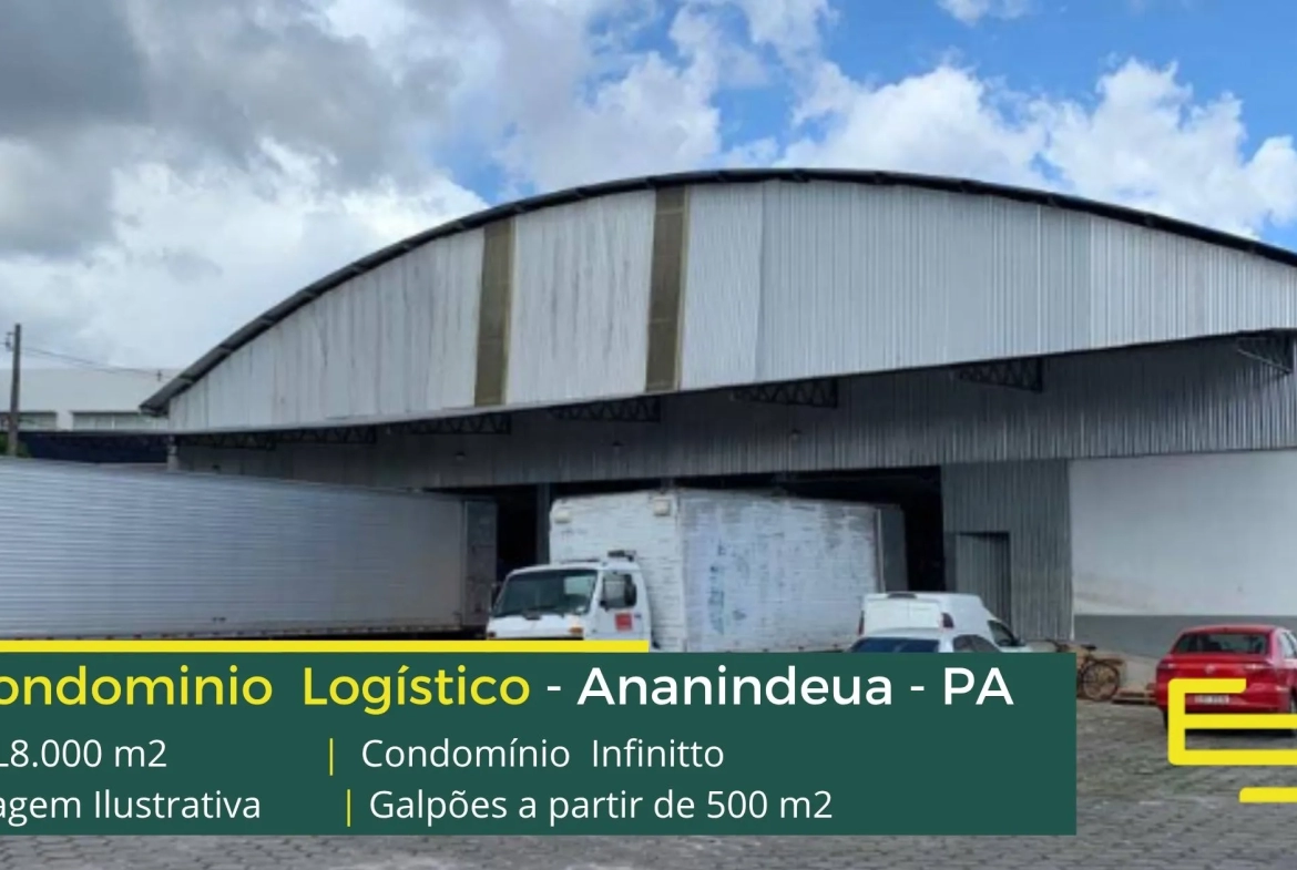 Galpão para alugar em Ananindeua PA em condomínio logístico com localização privilegiada, localizado a 1,9 km da Rodovia dos Trabalhadores, e além disso, com fácil acesso as cidades de Belém e Marituba. O condomínio Infinitto conta com área total construída de aproximadamente 15.000 m² e possibilita aluguel de galpões em Ananindeua a partir de 500 m2.