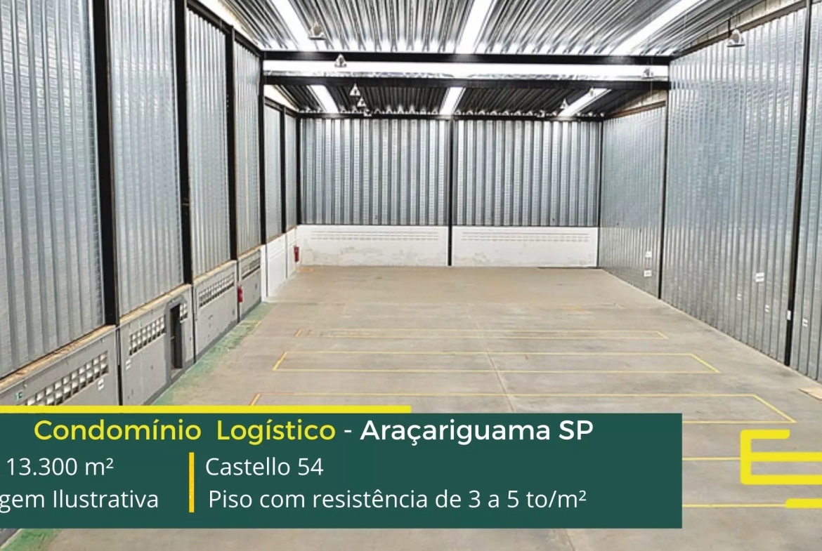 O Condomínio Castello 54 possibilita locação de galpões em Araçariguama com as seguintes configurações: