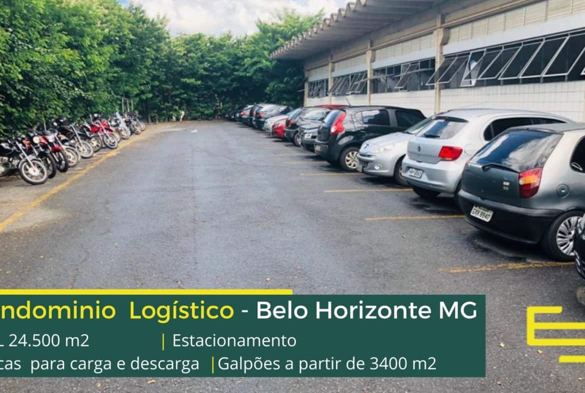 O condomínio de galpão para alugar em BH, conta com estacionamento para automóveis e além disso, estacionamento para veículos de carga.