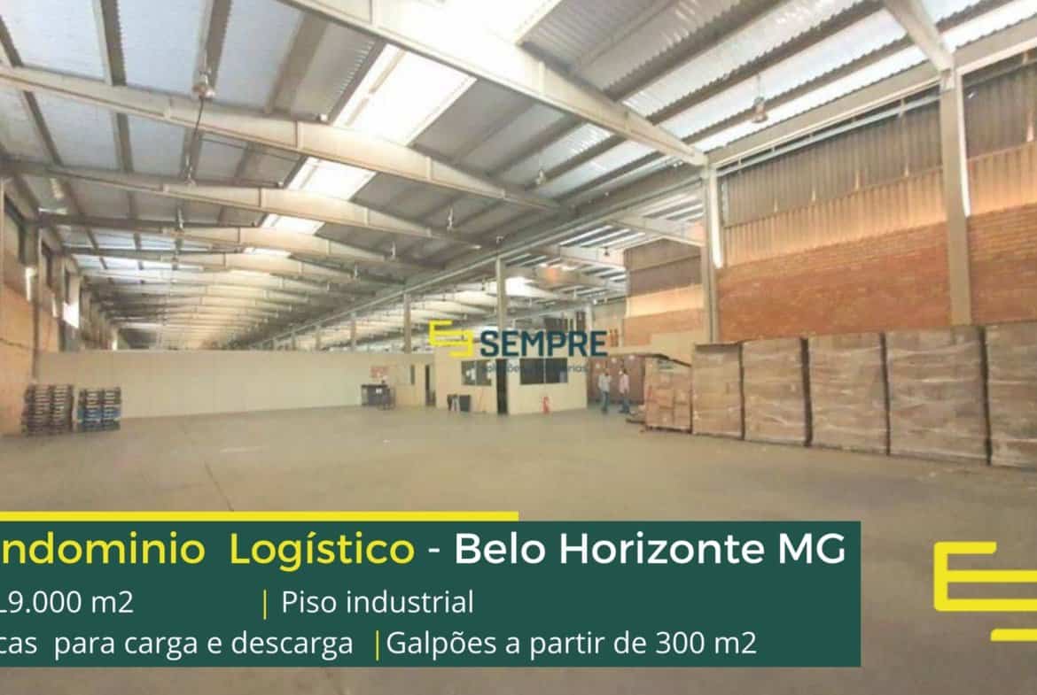 Aluguel de galpão em Belo Horizonte, com docas, possibilidade de porta paletes, em condomínio, com diferenciais de segurança e comodidades,