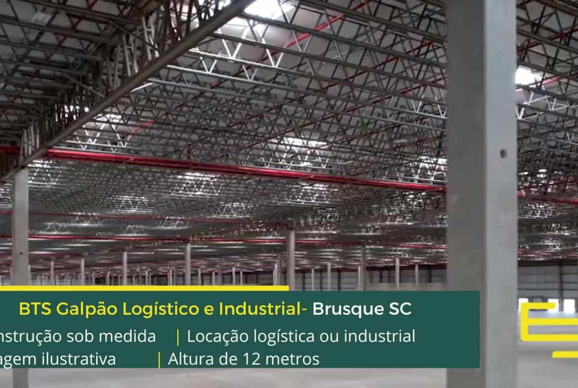 - Aluguel de galpão industrial ou logístico em Brusque SC com altura de 12 metros.