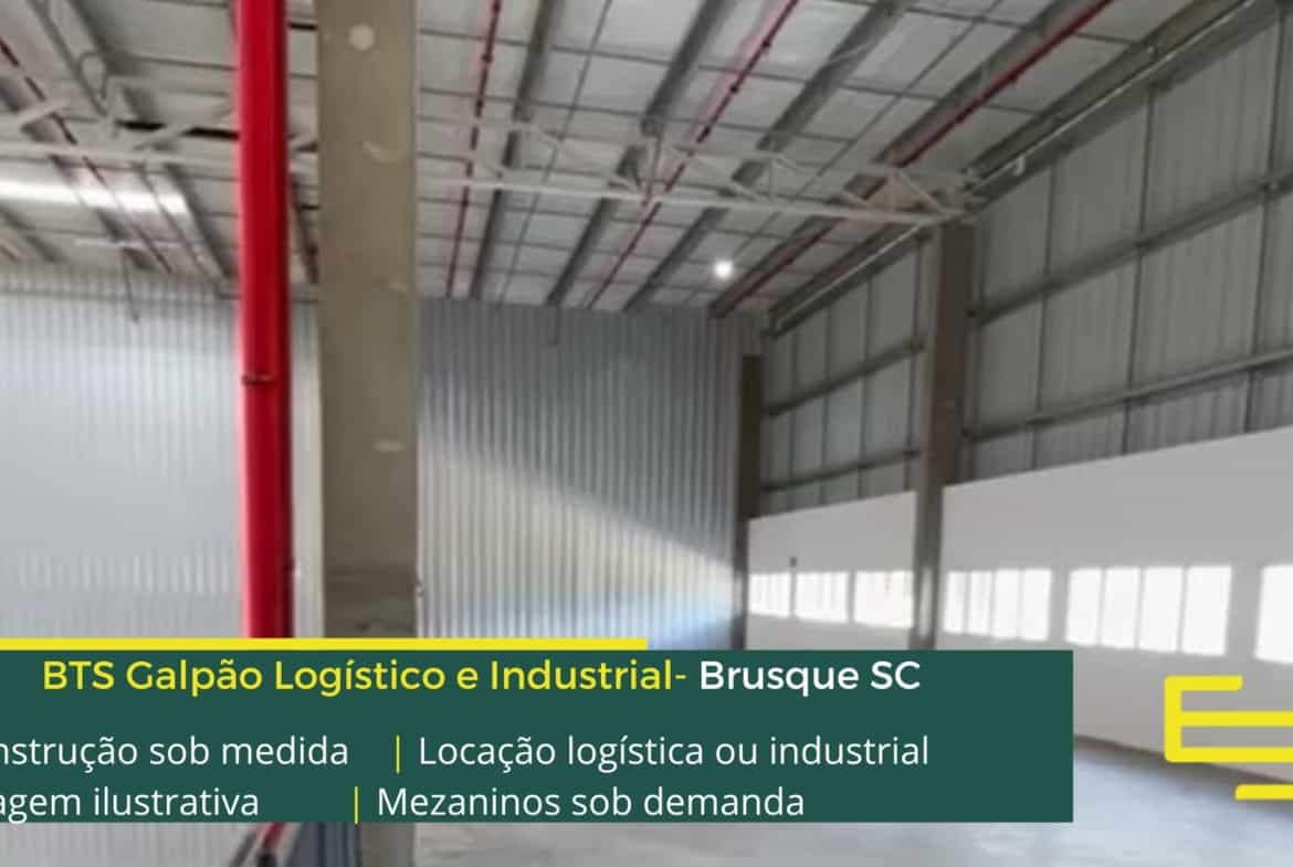 Neste modelo de aluguel de galpão em Brusque (Built to suit) , inclusive com utilização para centro logístico, o galpão para locação será feito de acordo com as instruções do futuro locatário, mas costumam ter as seguintes características: