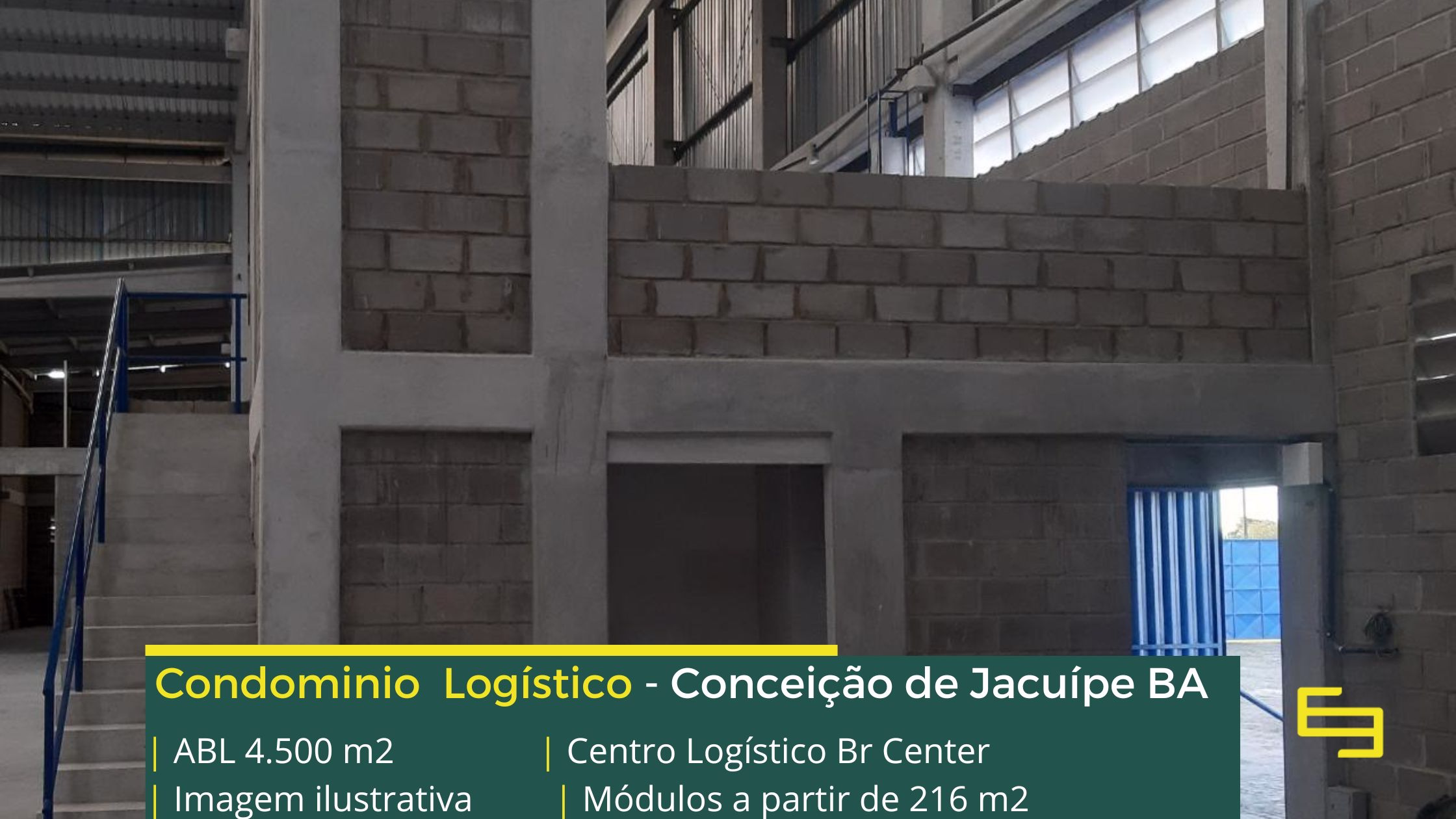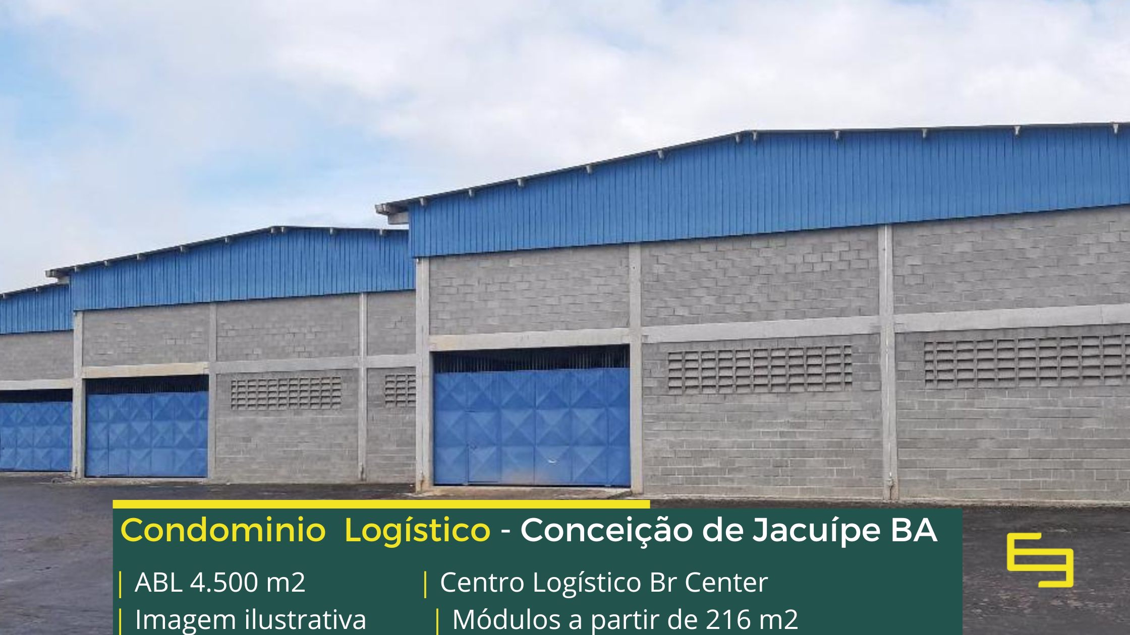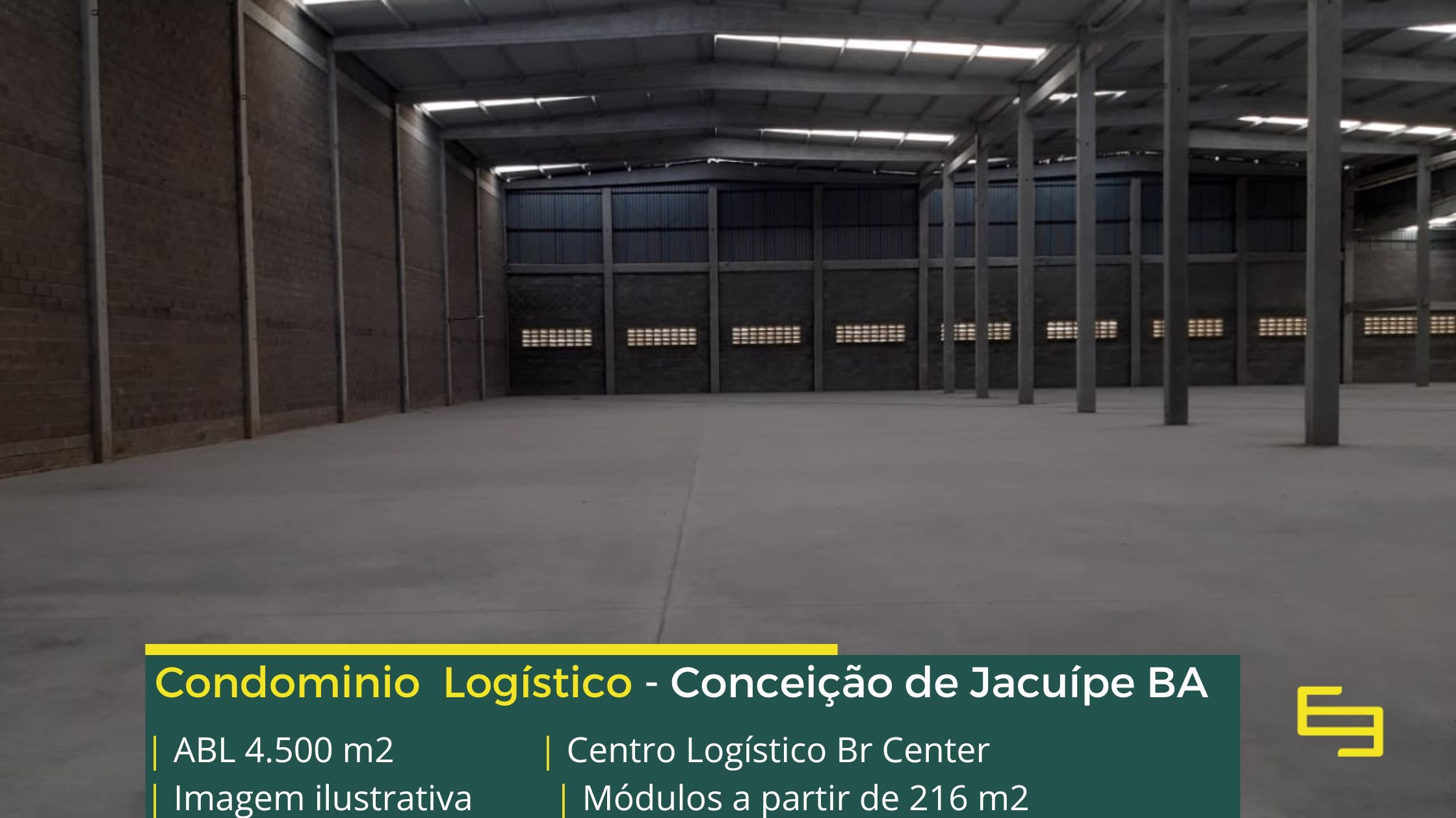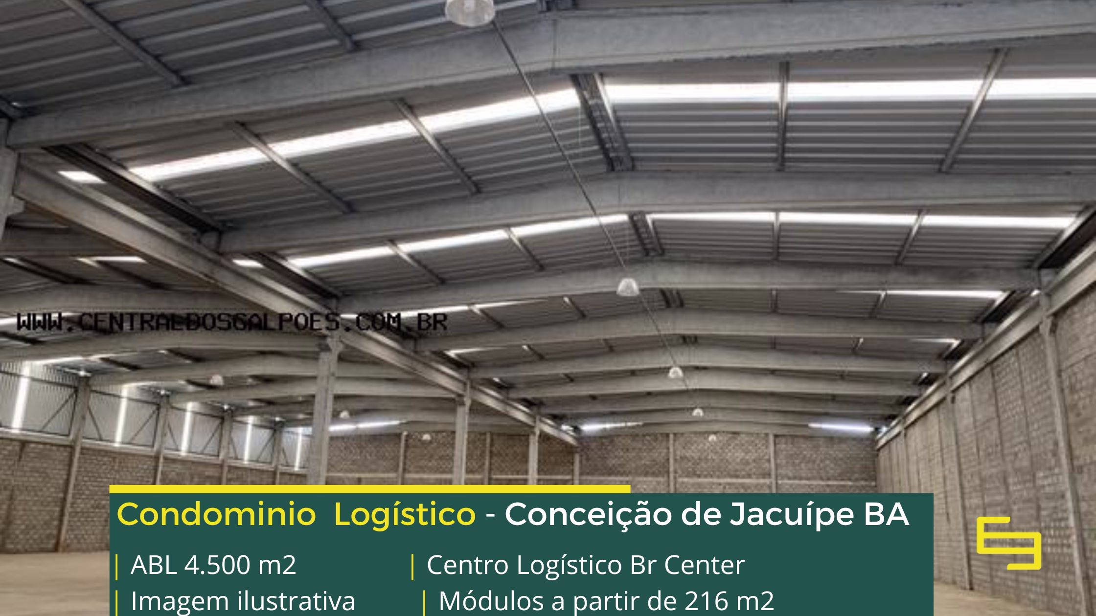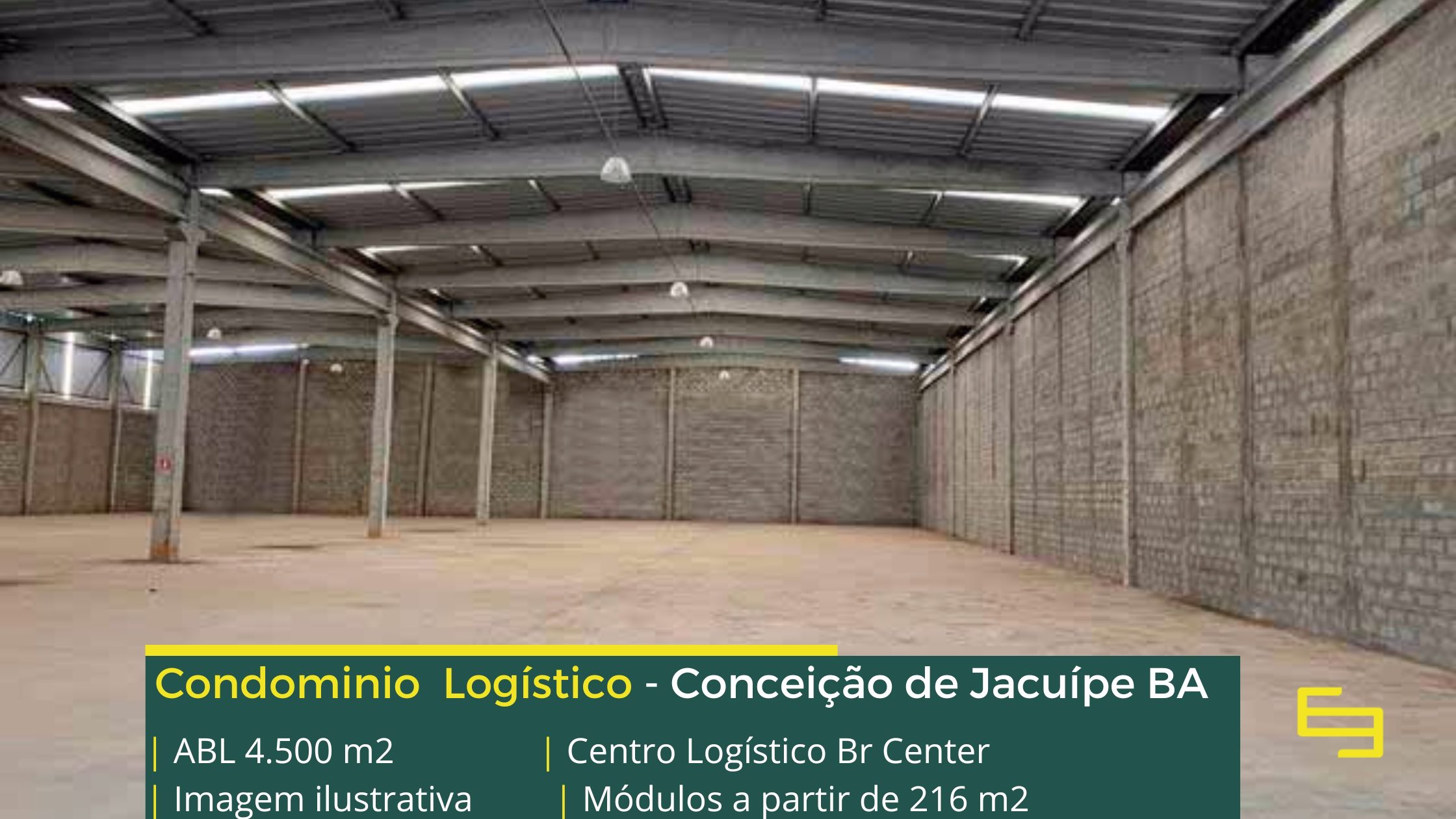 Galpão para alugar em Conceição do Jacuípe BA em condomínio logístico localizado na Rodovia BA 084 no trevo com a Rodovia BR 101, que permite fácil acesso as cidades de Alagoinhas e Feira de Santana, o condomínio logístico BR Center conta com área total construída de 4.500 m2 e sobretudo permite aluguel de galpões em Conceição de Jacuípe a martir de módulos com 216 m2.