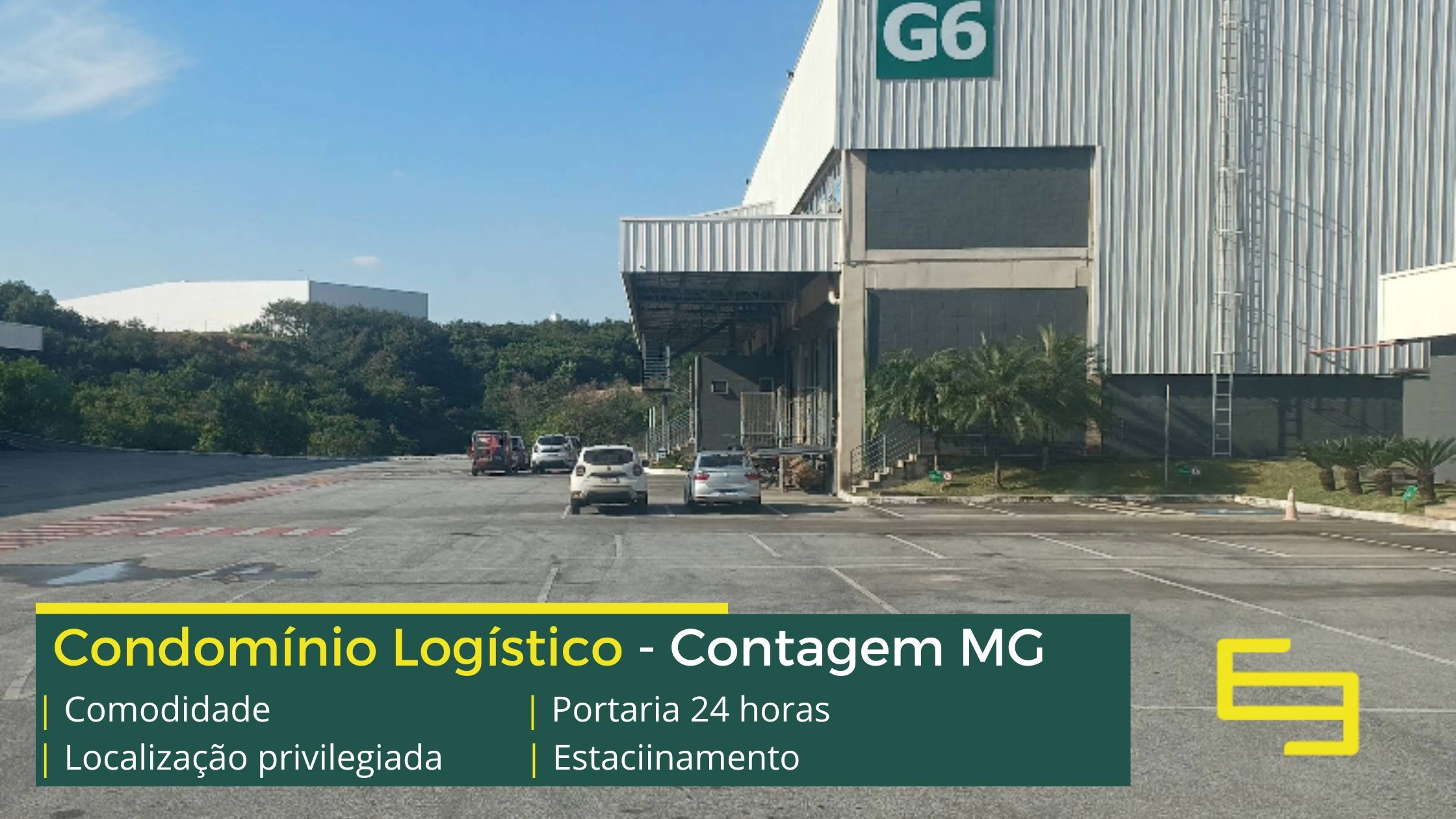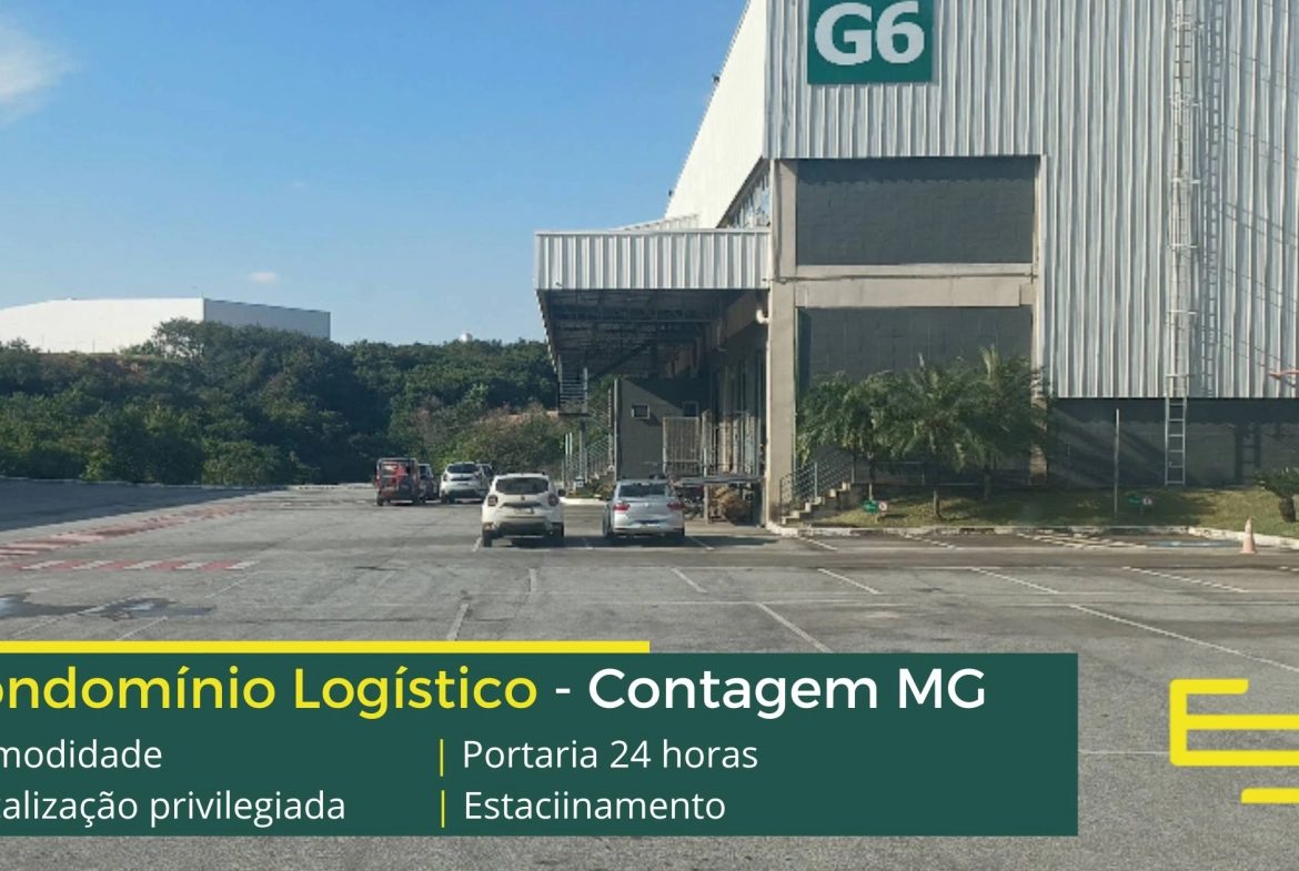 Galpão para alugar em Contagem, em condomínio logístico, com 6 módulos, com áreas de armazenagem entre 1.200 m² e 6.700 m², e além disso, vigilância com circuito fechado de TV, portaria blindada e docas para carga e descarga, com fácil acesso a Via Expressa.