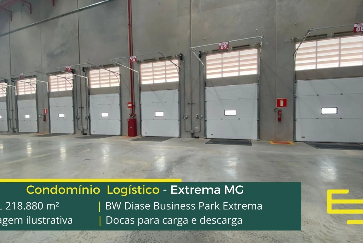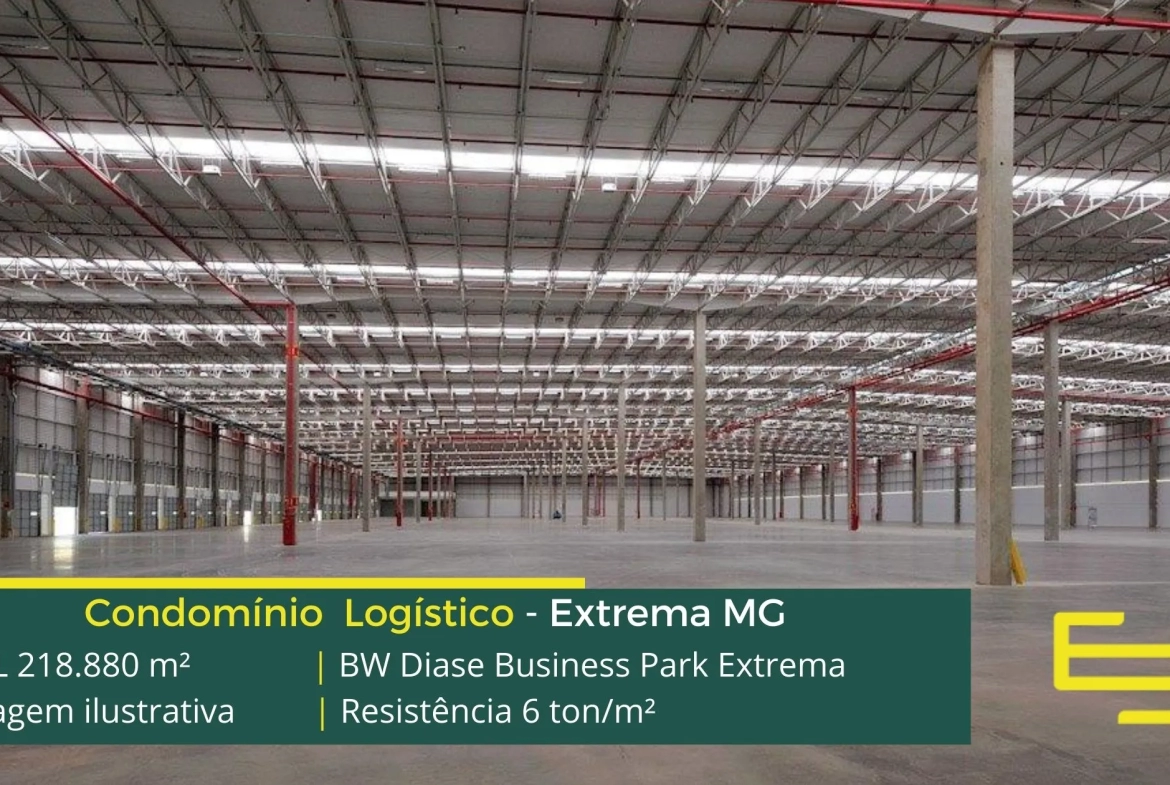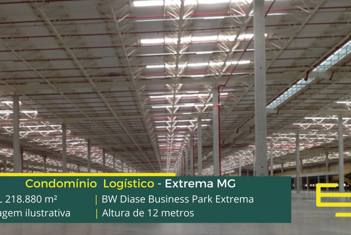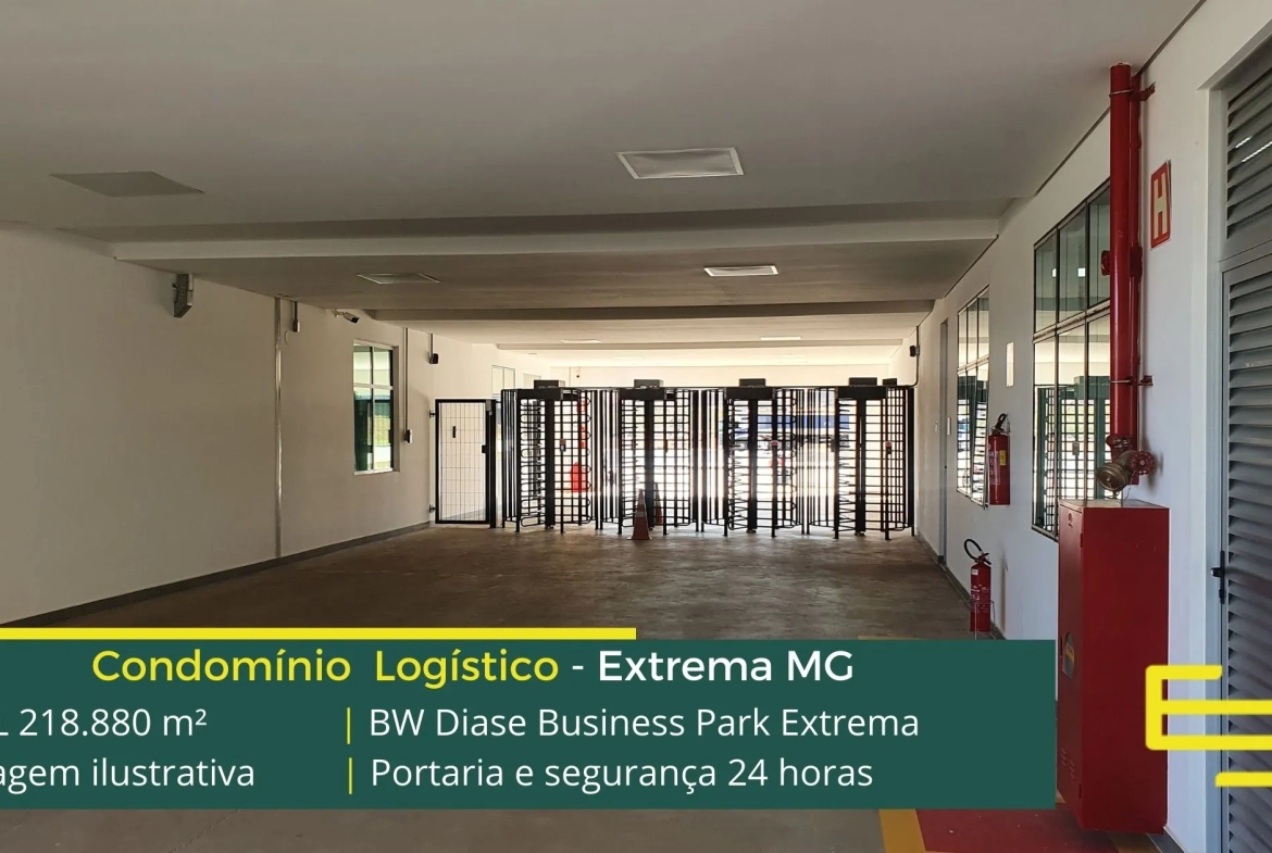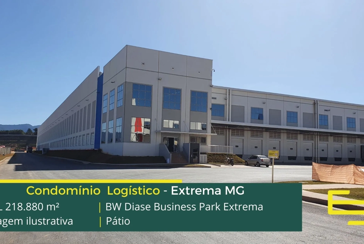 Galpão para alugar em Extrema MG em condomínio logístico, localizado as margens da Rodovia Fernão Dias, sentido Atibaia, a 115 km da cidade de São Paulo. O Condomínio BW Diase Business Park Extrema permite aluguel de galpões em Extrema a partir de 3000 m2. Conta com área total construída de 219,007.45 m2.