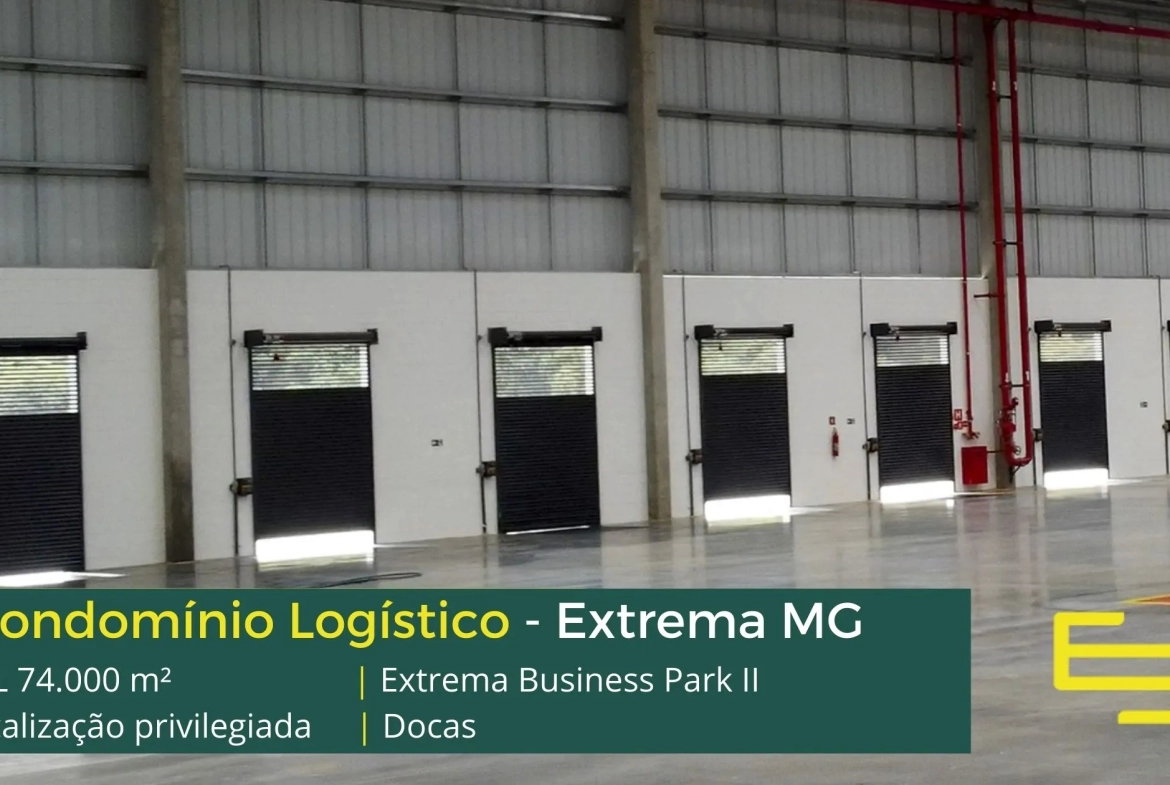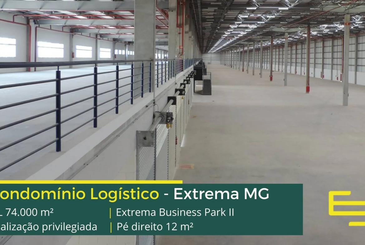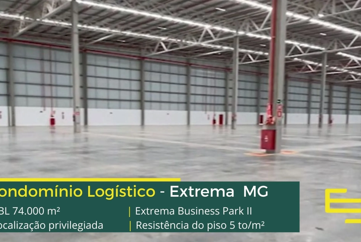 Galpão para alugar em Extrema MG, em condomínio localizado na Rodovia Fernão Dias, com fácil acesso a importantes cidades da região, como Campinas e Pouso Alegre, e além disso, a 90 km do aeroporto Internacional de Guarulhos. O condomínio Extrema Business Park II, é de padrão classe AAA, foi o primeiro condomínio logístico do Brasil a atingir o nível Platinum da certificação LEED . Com módulos flexíveis que permitem aluguel de galpões em Extrema a partir de 5000 m2 e sobretudo conta com ABL de 75.200 m² .