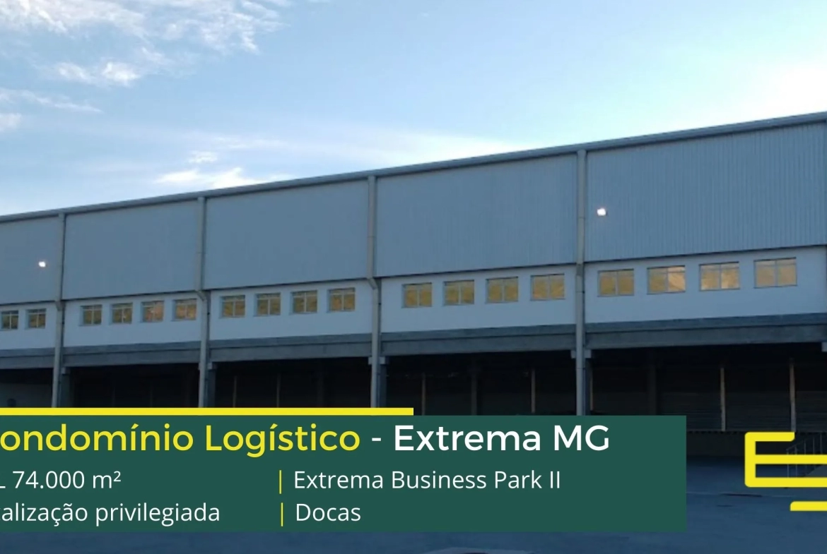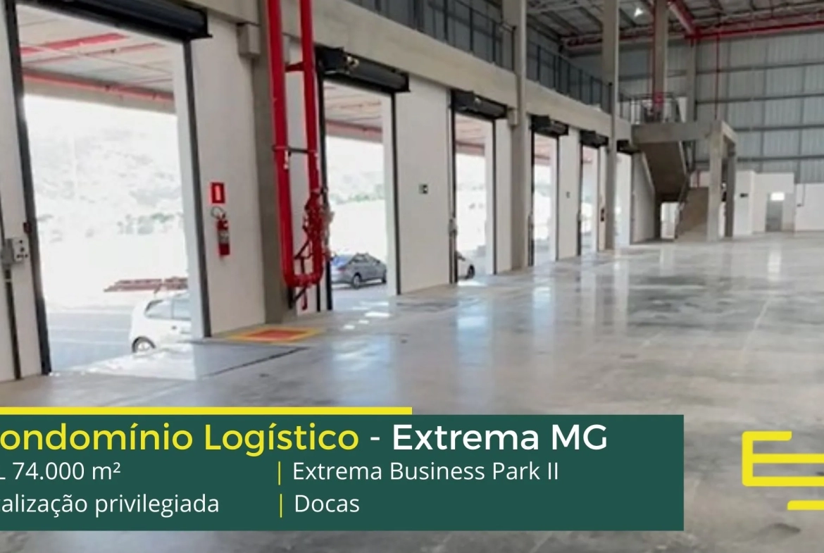 Galpão logístico para alugar em Extrema MG, em condomínio fechado, com docas, segurança 24 horas com CFTV e além disso, clausura de caminhões e automóveis, com módulos flexíveis destinados à implantação de indústrias e de centros logísticos.