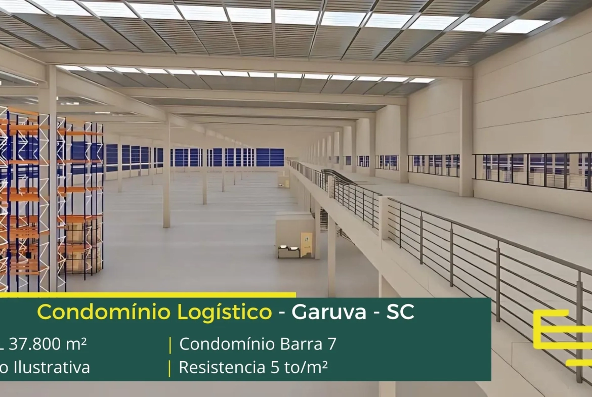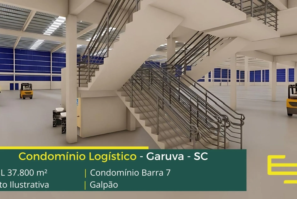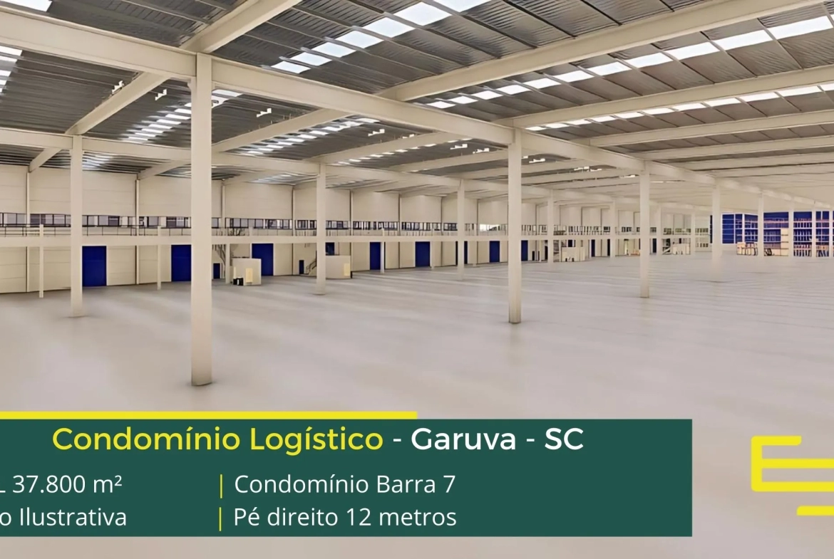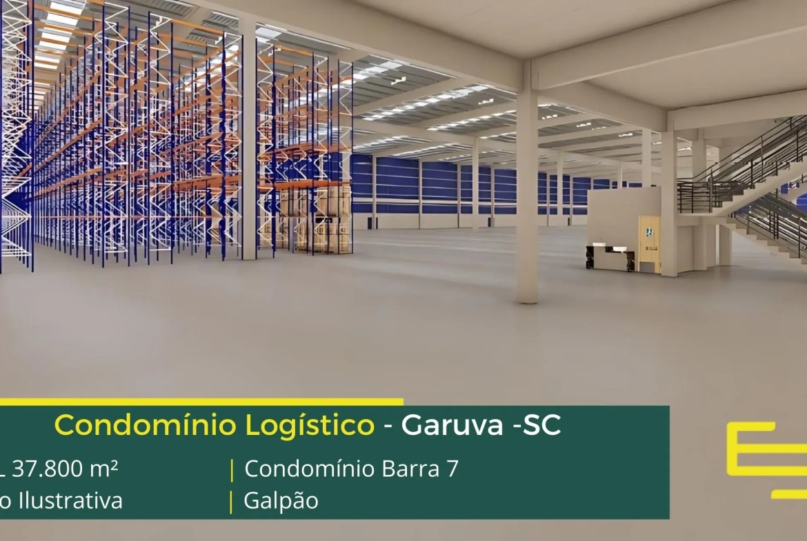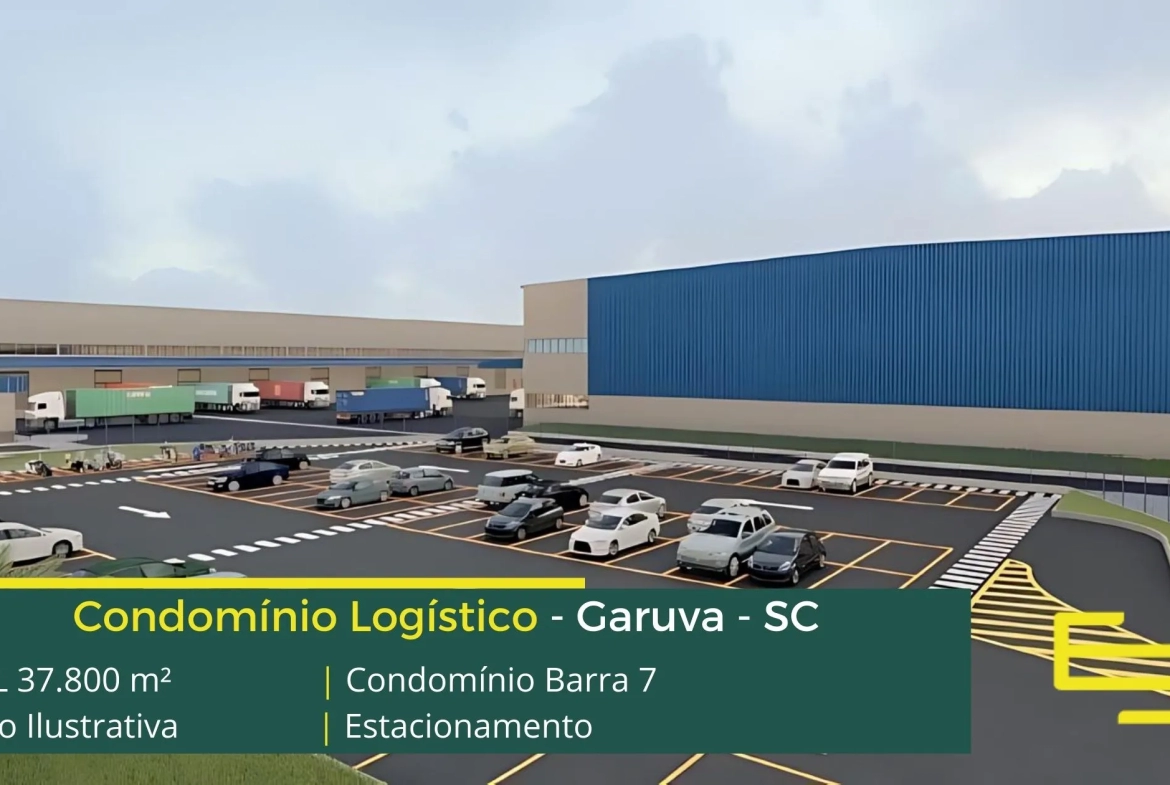 Galpão para alugar em Garuva SC as margens da Rodovia SC 417 e a 16,7 km da BR 101, o Condomínio Barra 7 conta com 37.800 m² de área locável e permite aluguel de galpões modulação a partir de 2.983 m², desenvolvido para operações industriais e sobretudo de logística.
