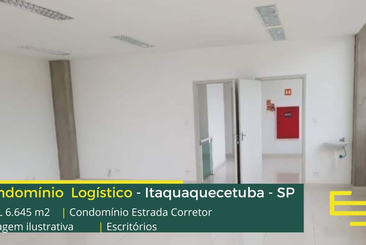 Galpão para alugar em Itaquaquecetuba – Condomínio Estrada Corredor. Condomínio industrial localizado a 1,0 km da Rodoanel Mario Covas e sobretudo logístico com área total construída de 6.645 m² e que sobretudo, permite ocupação modular e flexível de módulos a partir de 1.300 m².