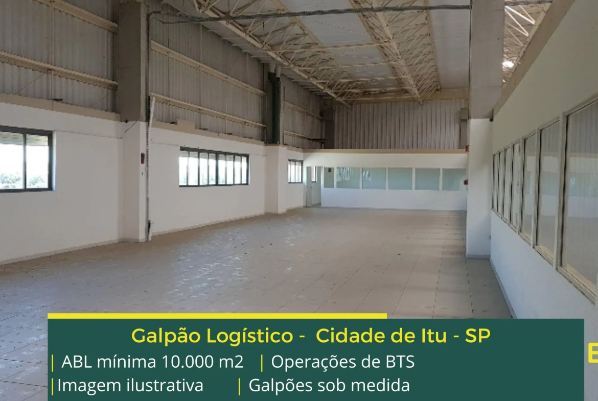 Galpão para alugar em Itu SP, desenvolvido através de operação de BTS mas que costuma contar com os seguintes diferenciais: