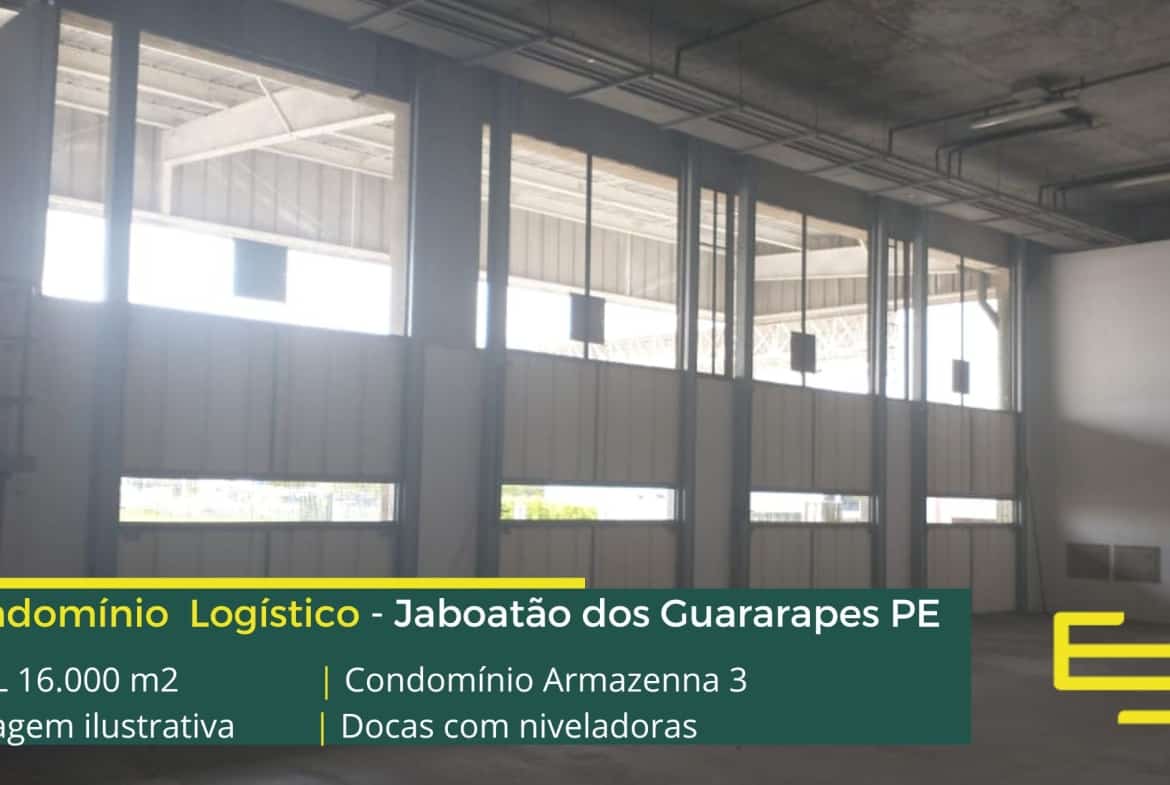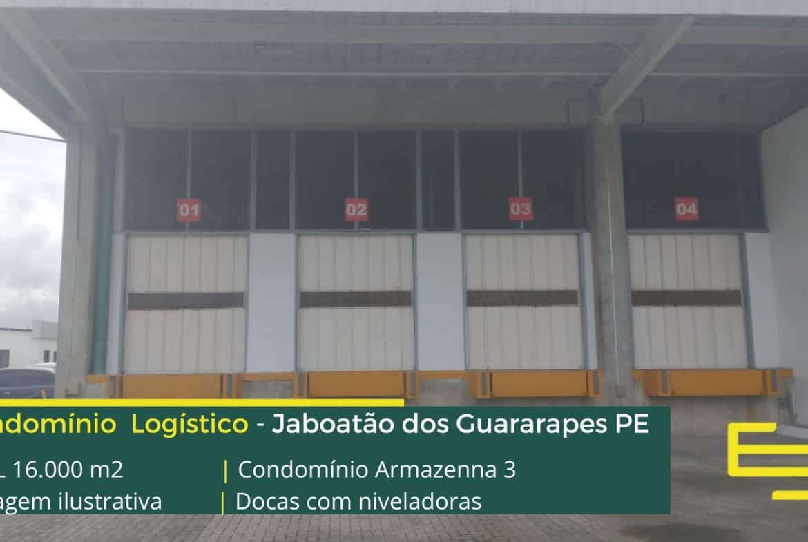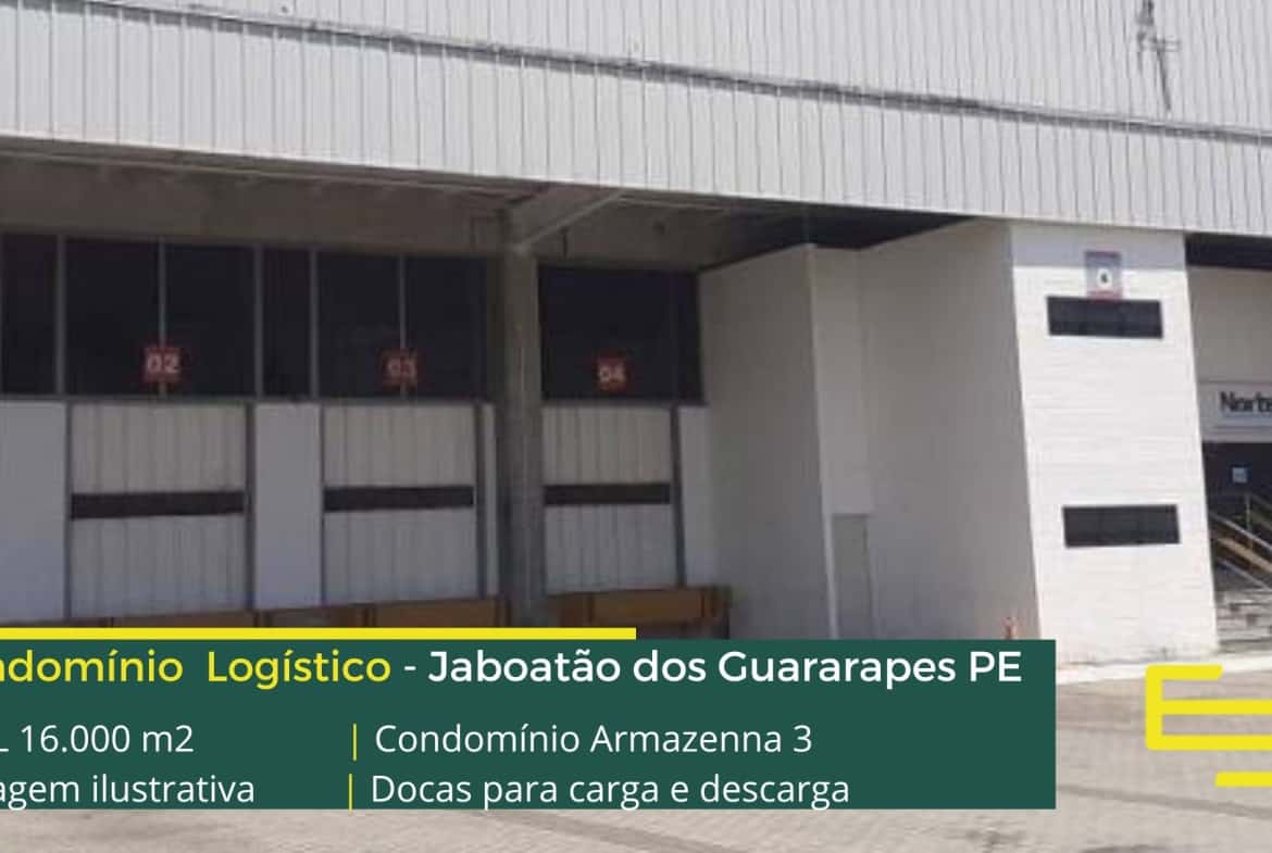 Galpão logístico para alugar em Jaboatão dos Guarapus PR, região metropolitana de Recife, em condomínio que conta com estrutura completa de segurança, com portaria 24 horas e além disso, galpões com docas;
