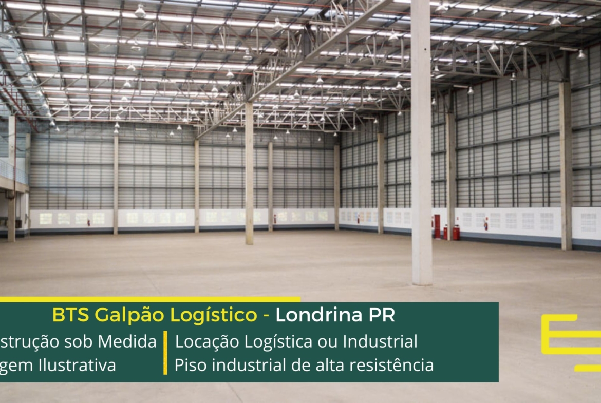 - Galpão para alugar em Londrina com piso industrial além disso, de alta resistência.
