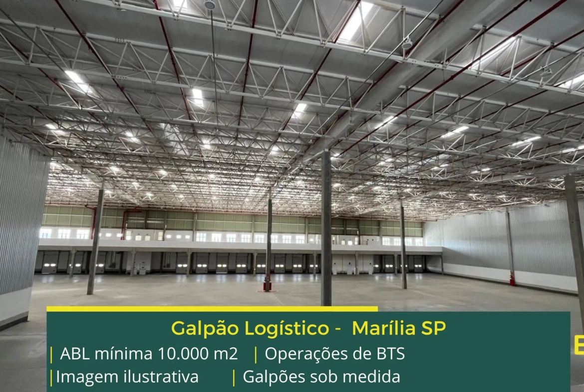 Galpão logístico e industrial para alugar em Marília SP com fácil acesso à Rodovia Rodovia Comandante João R Barros e além disso, e a Rodovia Transbrasilian e as cidades de Bauru e Ourinhos, a partir de 10.000 m2 de área bruta locável, podendo ser ocupado em fases.