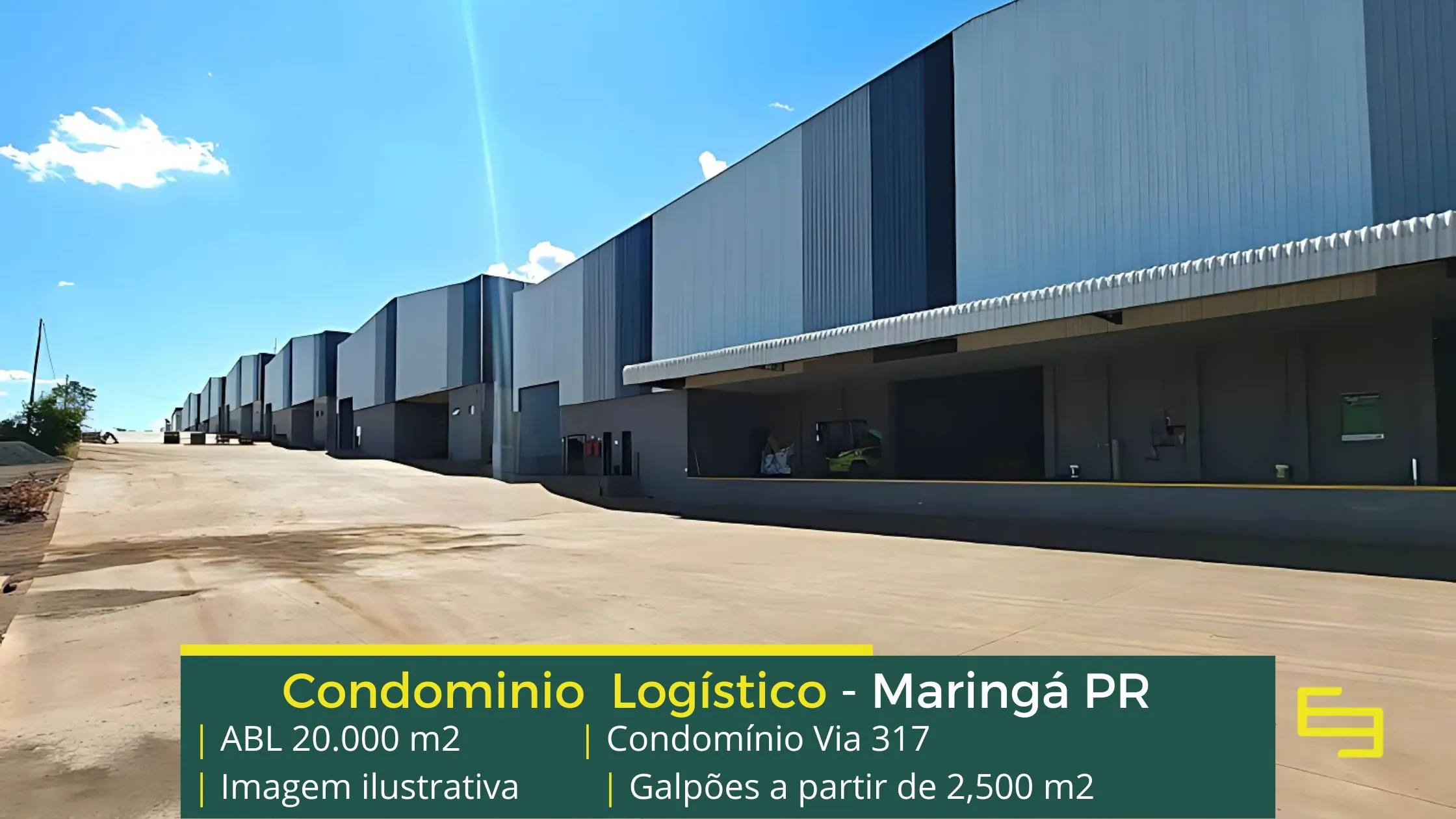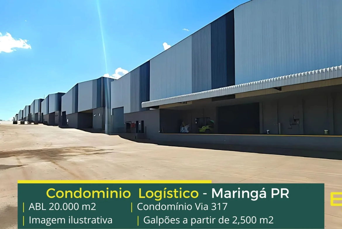 Galpão para alugar em Maringá PR em condomínio logístico localizado as margens da Rodovia PR 317, ao lado do Aeroporto, e além disso, a BR 376 e com fácil acesso as cidades de Apucarana e Mandaguaçu, o condomínio Via 317 conta com área construída de 20.000 m2, com possibilidade de expansão e permite aluguel de galpões em Maringá em módulos de 2500 m2.