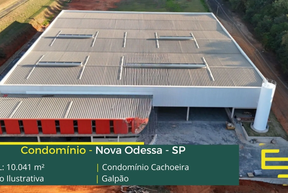 Galpão para alugar em Nova Odessa, em condomínio estrategicamente localizado a 5,8 km da Rod. Luiz de Queiroz, além disso o condomínio Logístico Cachoeira conta com área locável de 10.041 m².
