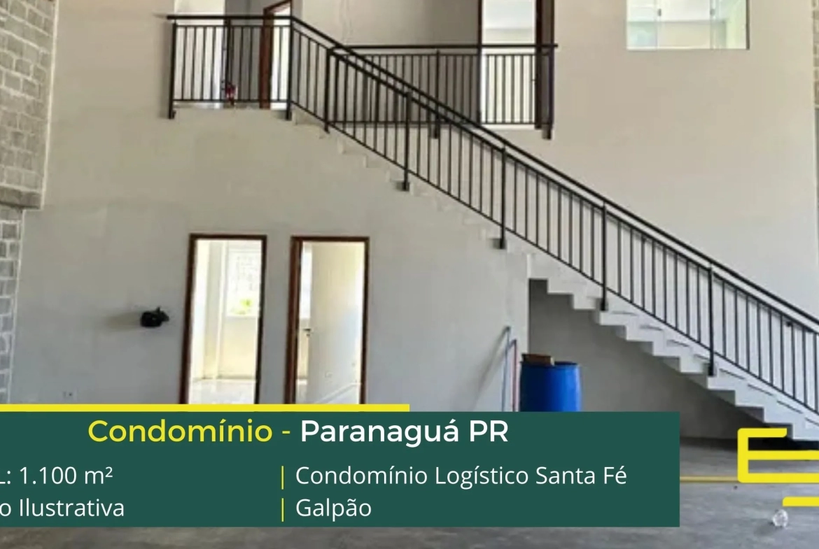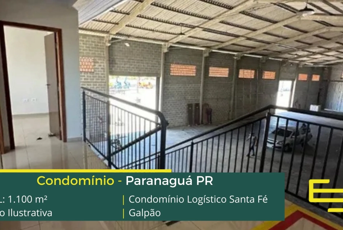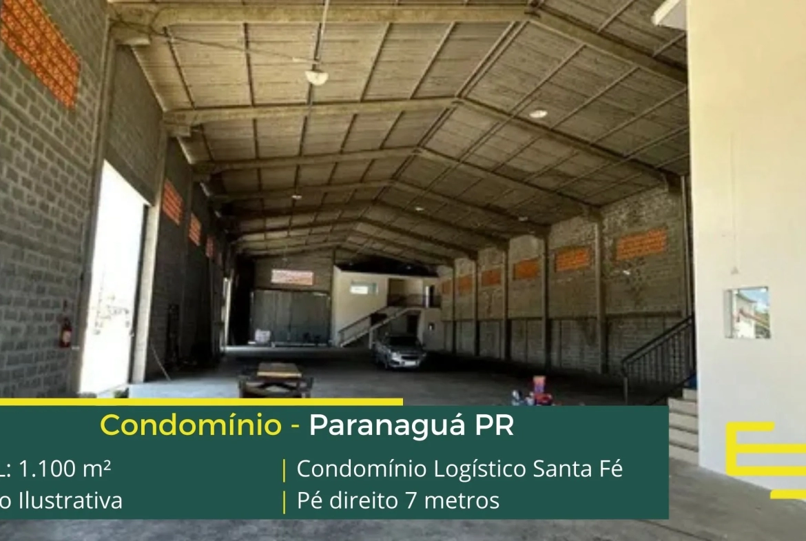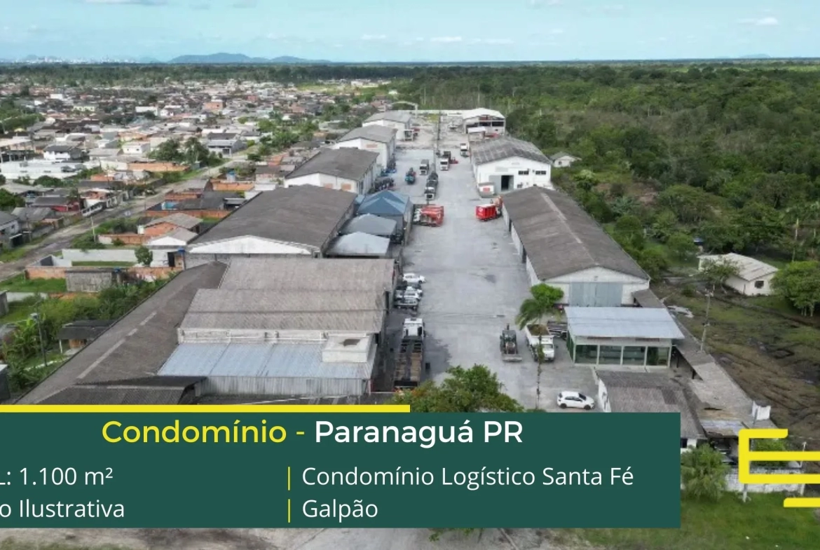 Galpão para alugar em Paranaguá – em condomínio logístico com localização privilegiada, localizado as margens da Rod. Eng Argus Thá Heyn. O condomínio Santa Fé conta com área total locável de 1.100 m².